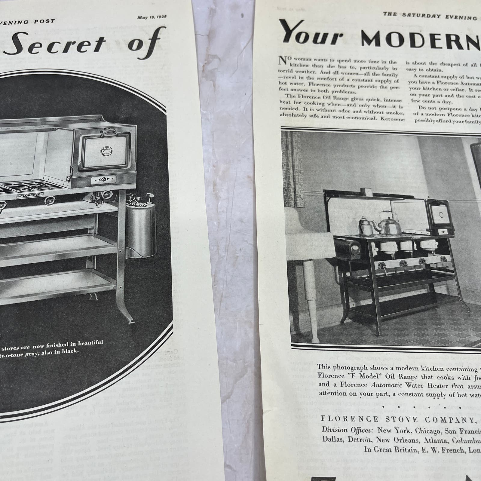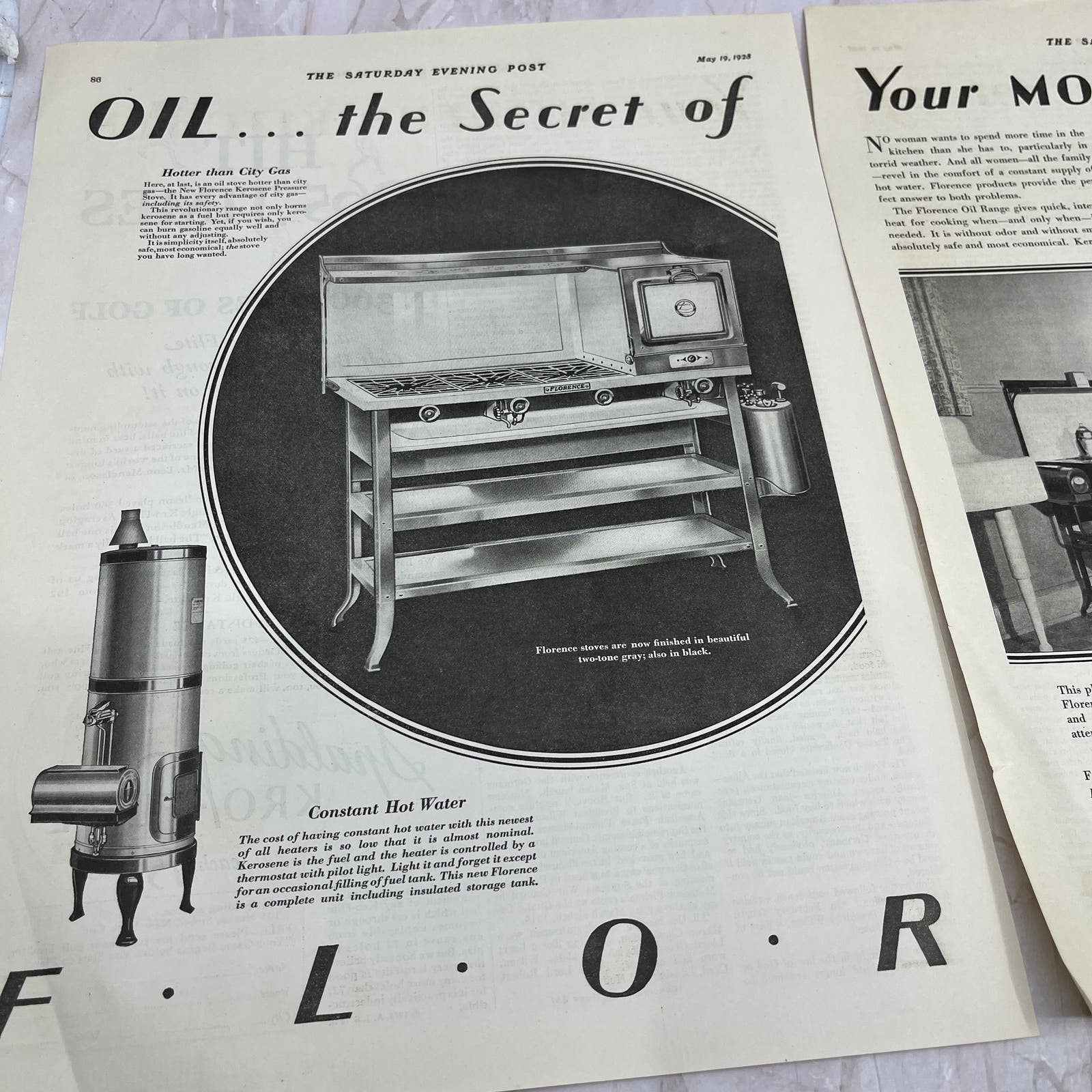 Florence Stove Co Boston 2 Pages 1928 Original Magazine Advertisement FL6-8