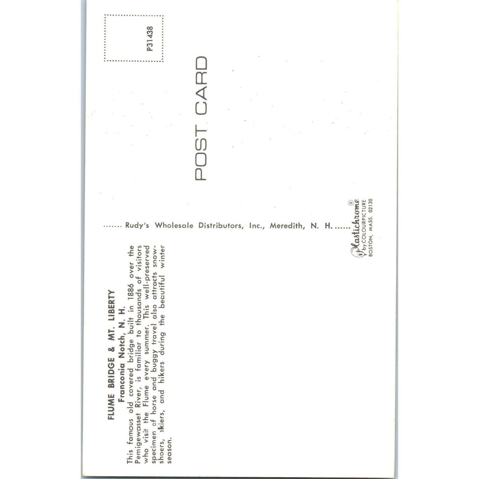 Flume Bridge Mt. Liberty Franconia Notch NH Vintage Covered Bridge Postcard PC11