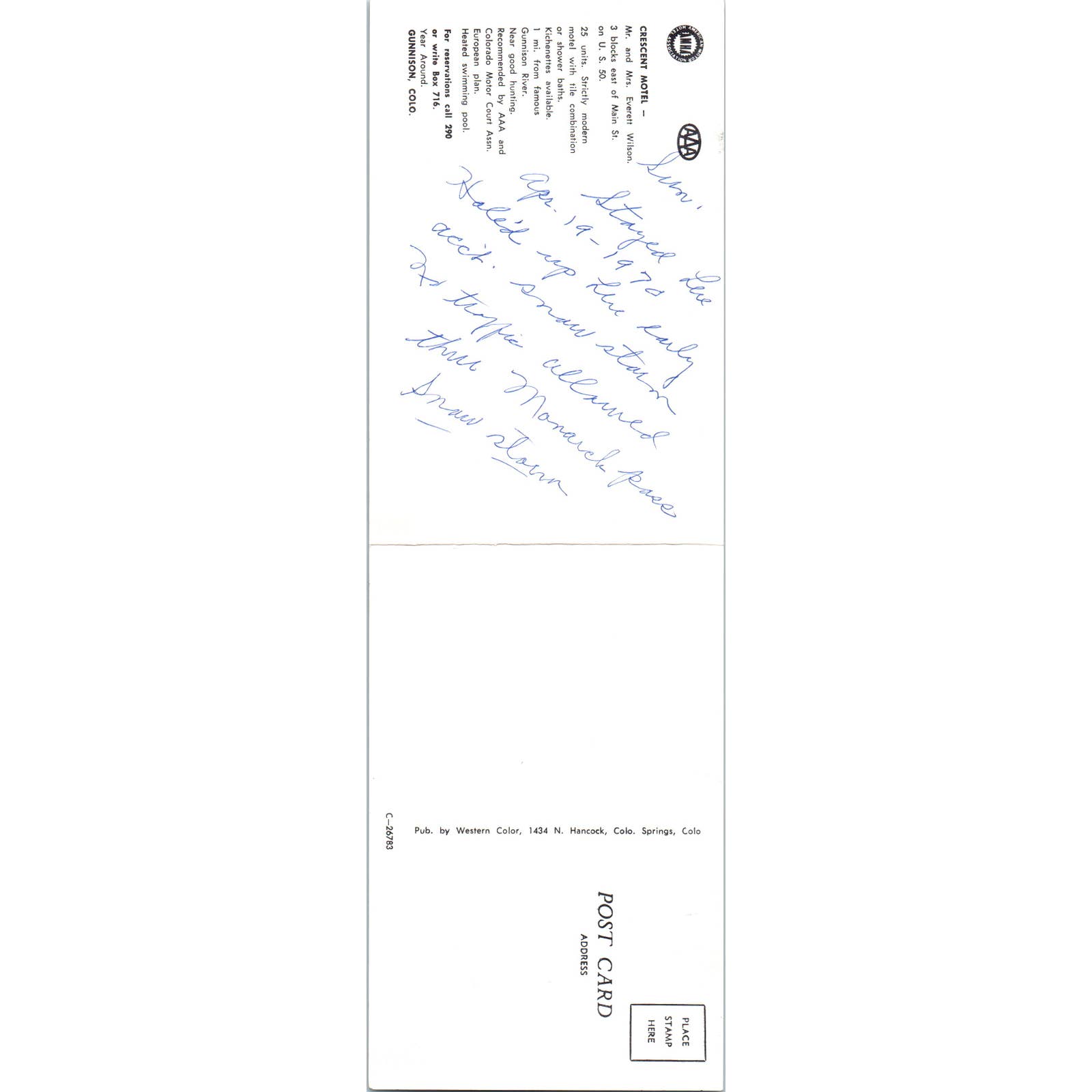 Folding Postcard Crescent Motel Gunnison Colorado 1970 Original Postcard TK1-29