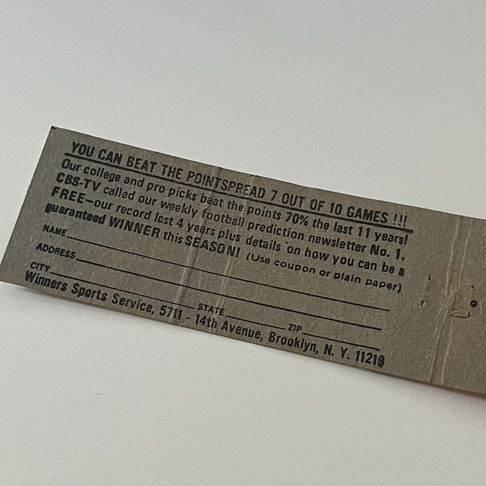 Football Fans Beat the Points Winners Sports Brooklyn Vintage Matchbook Cover TB6-MB2-6