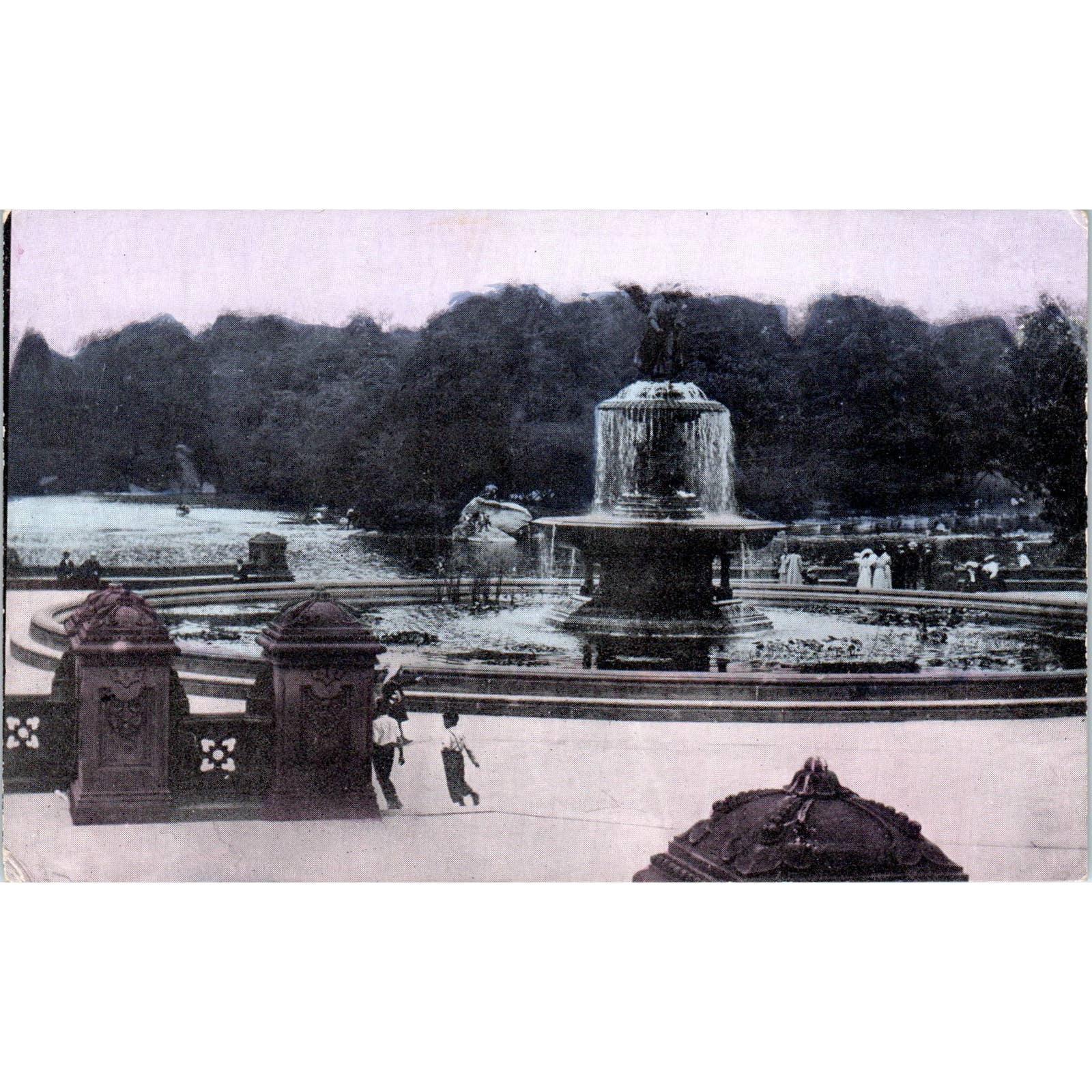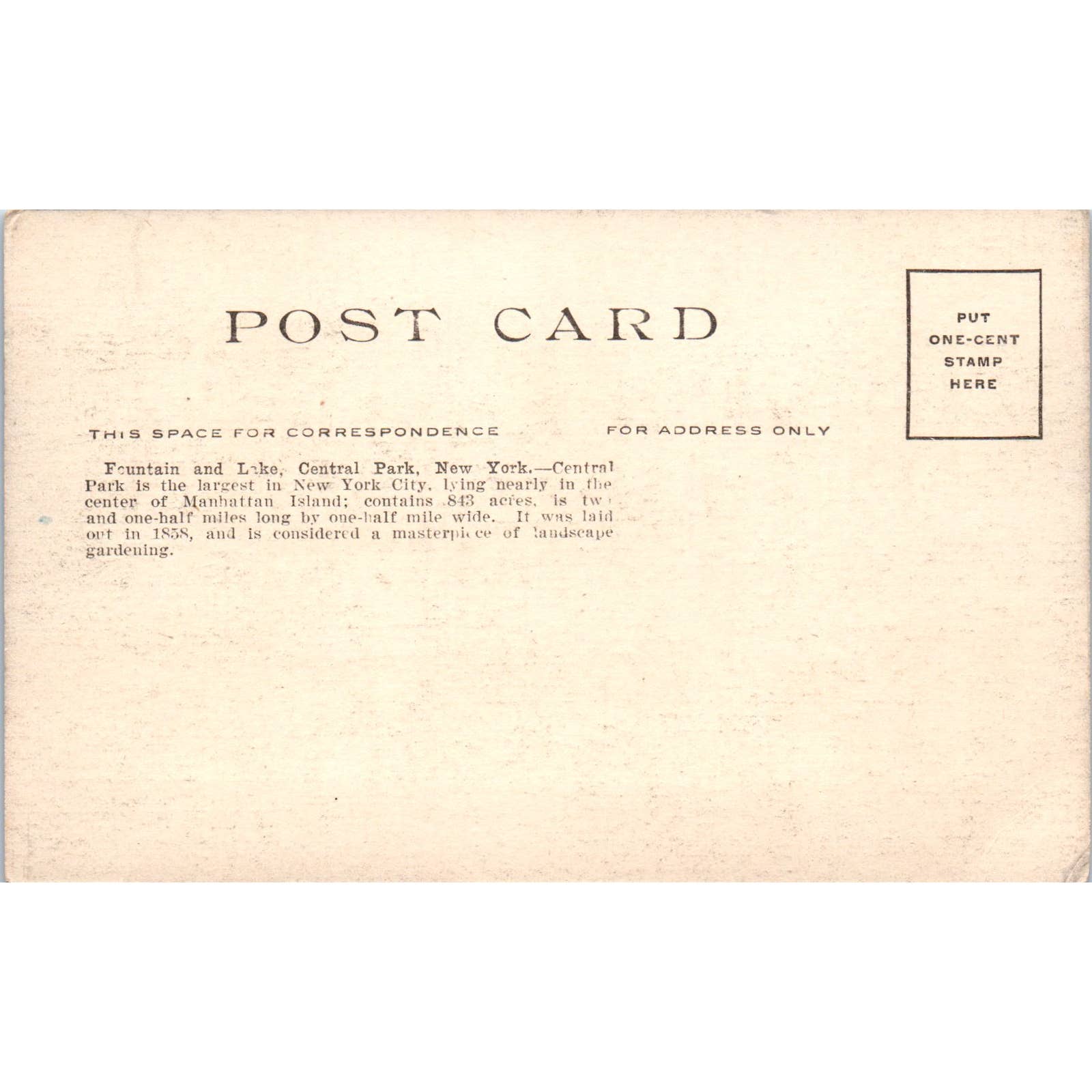 Fountain and Lake Central Park New York c1910 Original Postcard TK1-24