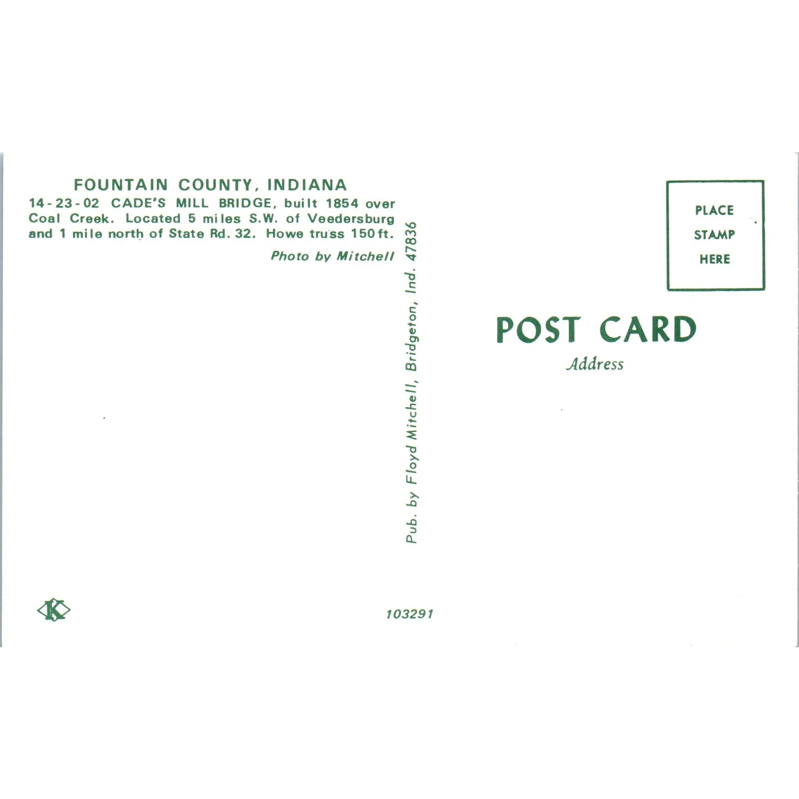 Fountain County Indiana Coal Creek Cade's Mill Covered Bridge Postcard PC6