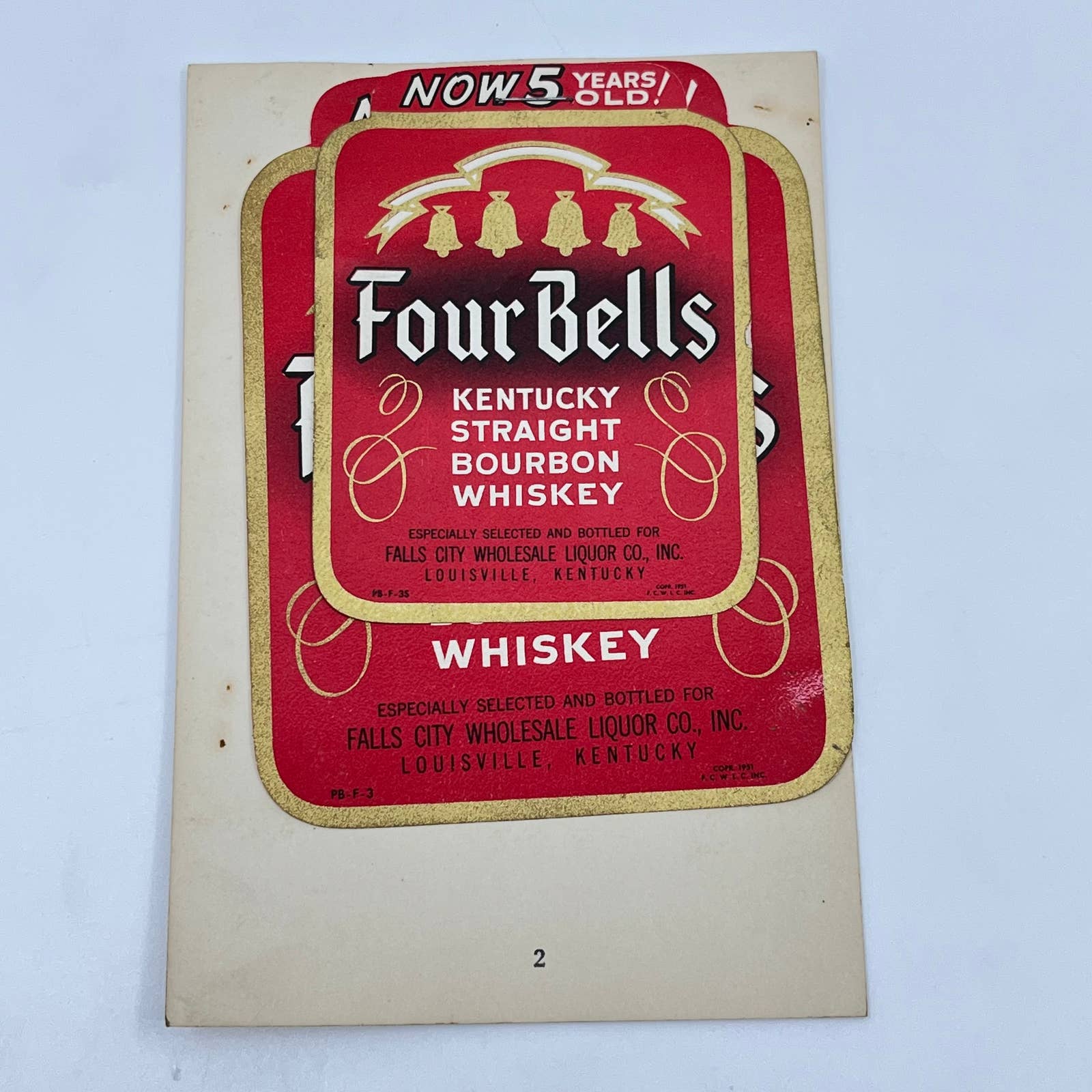 Four Bells Whiskey Label Set of 2 Falls City Wholesale Liquor Co Louisville KY