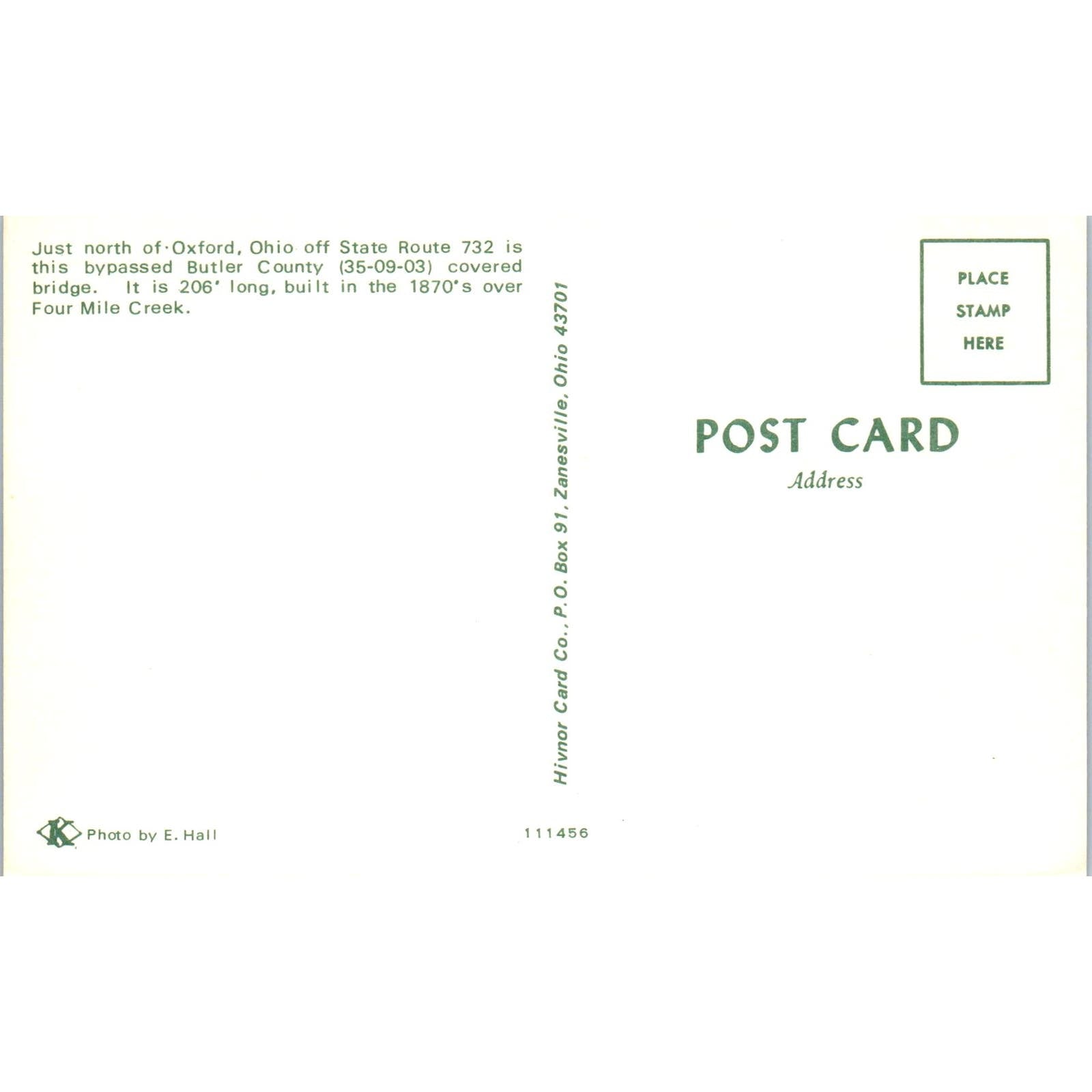 Four Mile Creek Oxford Ohio Covered Bridge Postcard PB10