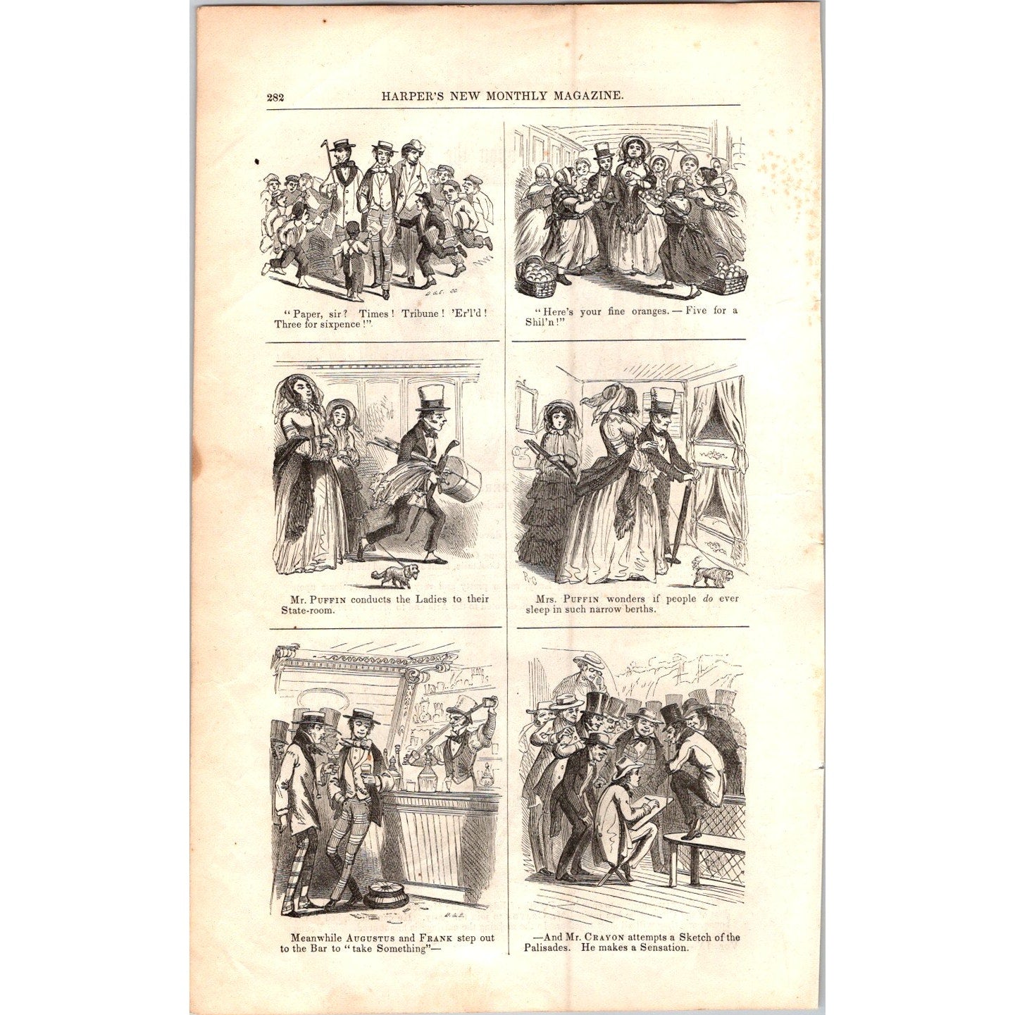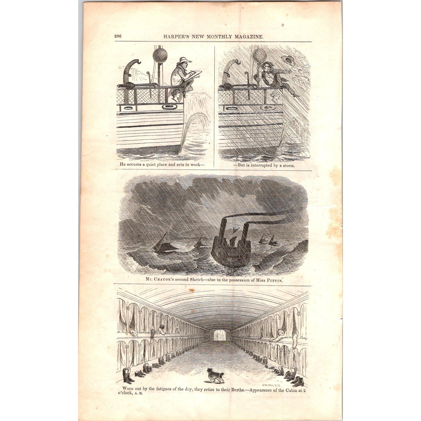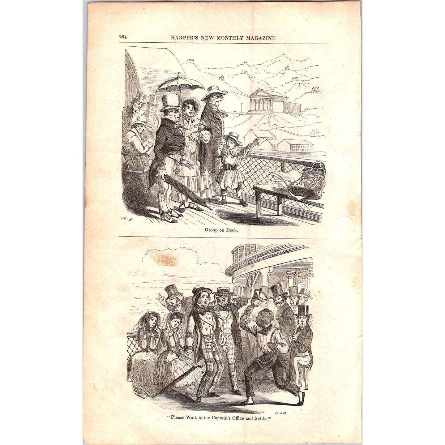 Measures approx 5.5x9". If you need an exact measurement please ask prior to ordering. Original piece taken from an 1854 Harper’s Monthly Magazine. This is an old piece - may have small blemishes, etc that come with age. They may also have small tears, etc around the edges. See pics for condition.