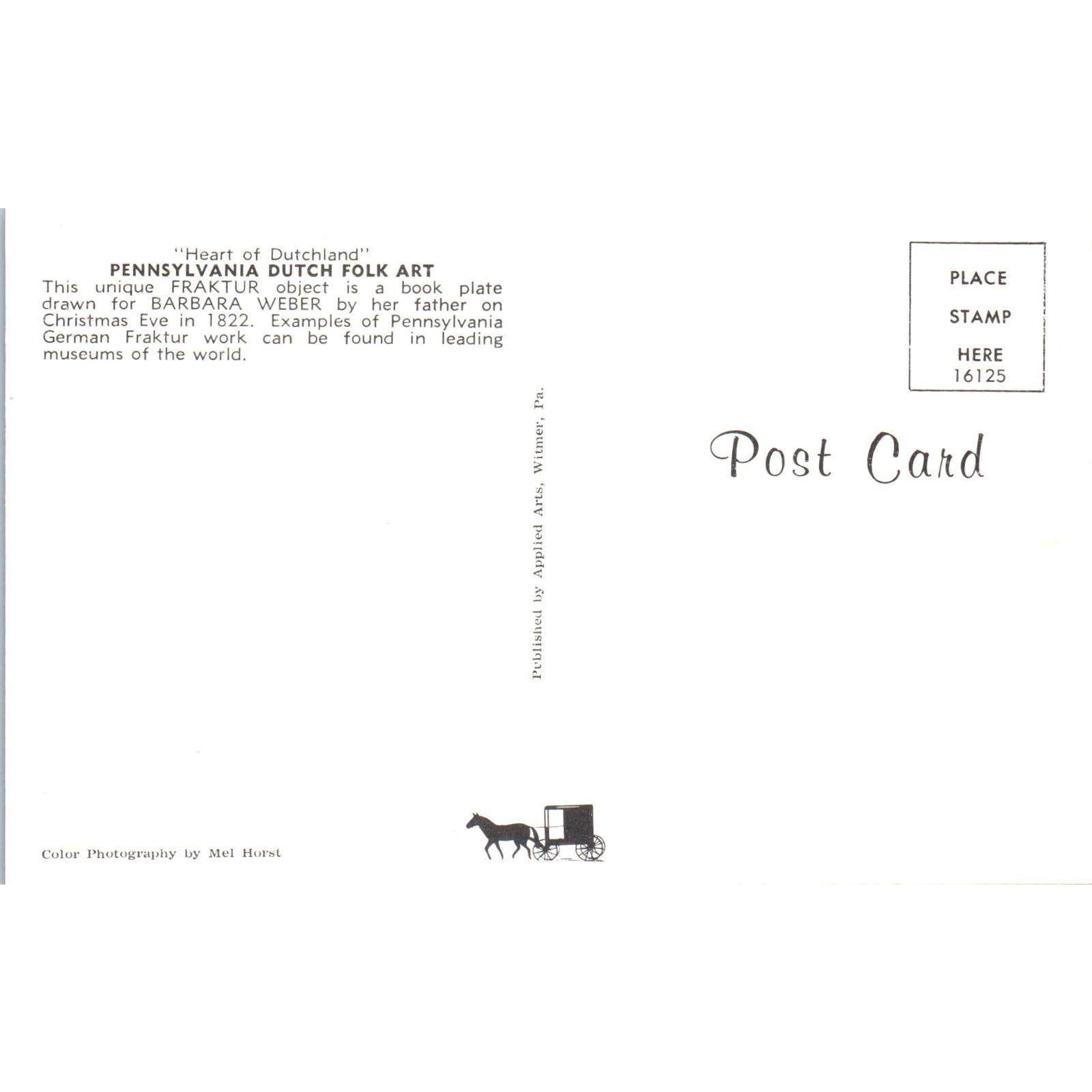Fraktur Barbara Weber Folk Art Pennsylvania Dutch Country Postcard PD8