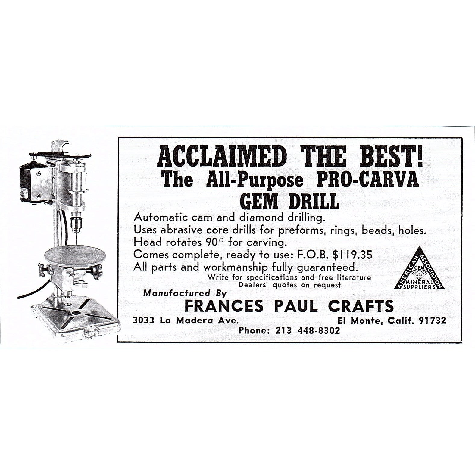 Frances Paul Crafts Pro-Carva Gem Drill El Monte CA 1972 Ad AF8-M4