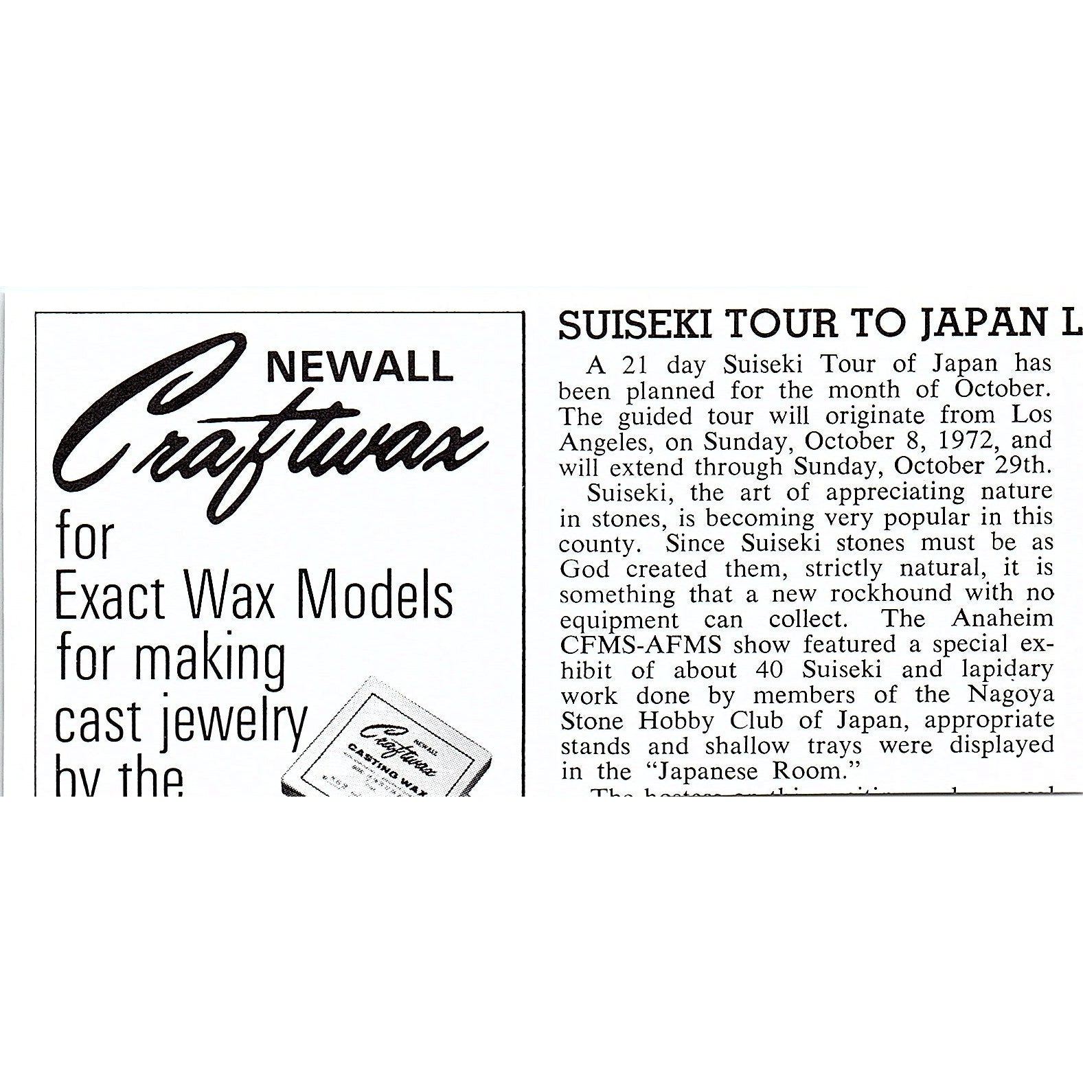 Measures approx 2.5x5". This is a SMALL Ad, size is approximate. Original piece taken from a 1972 Lapidary Journal magazine. Has regular wear and tear you would expect from a piece this age. See pics for condition.