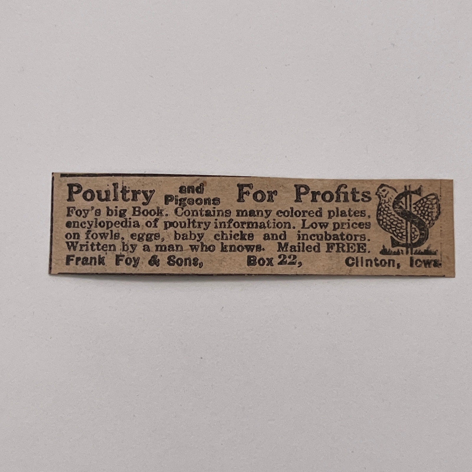 Frank Foy & Sons Poultry for Profits Clinton Iowa 1926 Ad AG3-S1