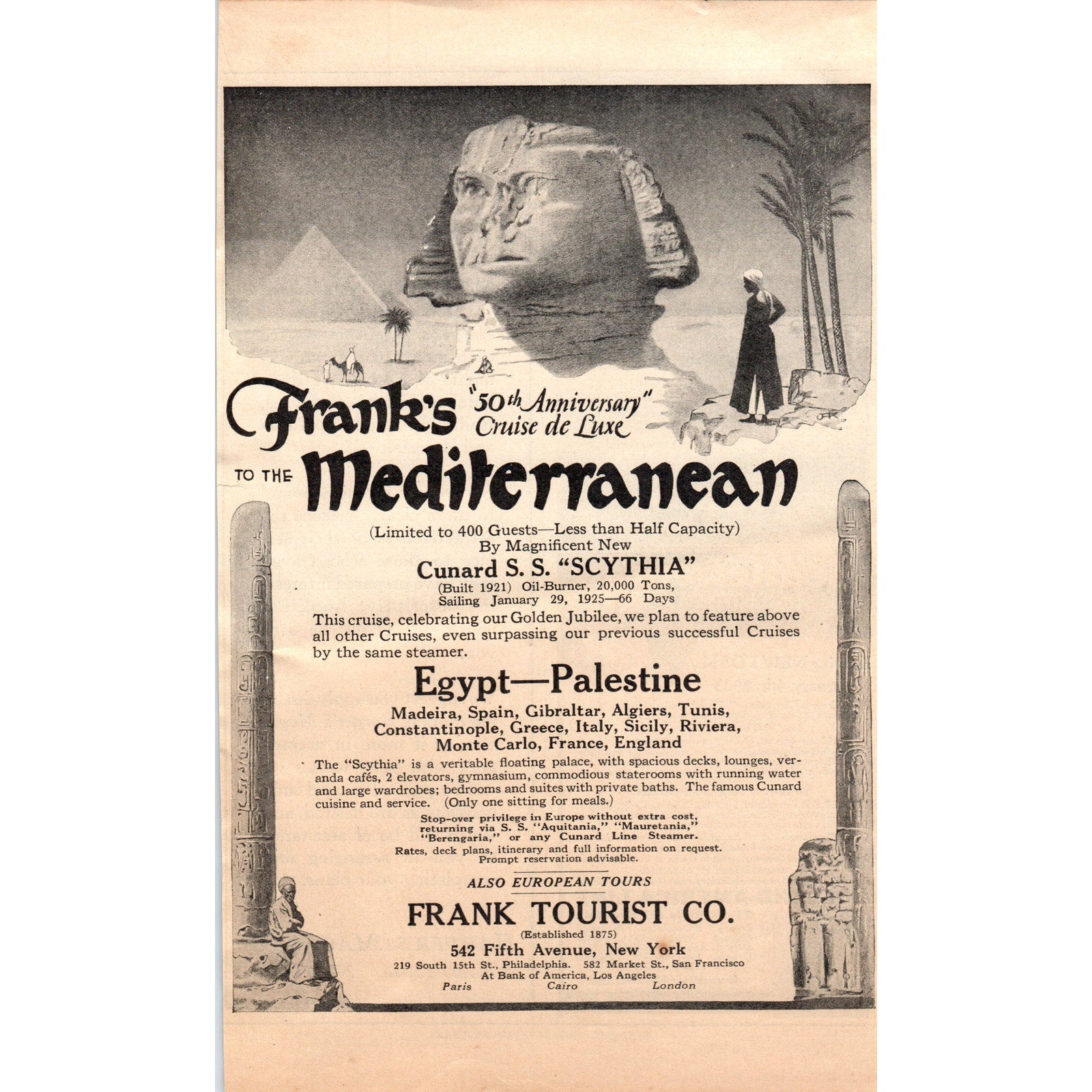 Frank Tourist Co Cruises Cunard S.S. Scythia 1924 Magazine Ad D23