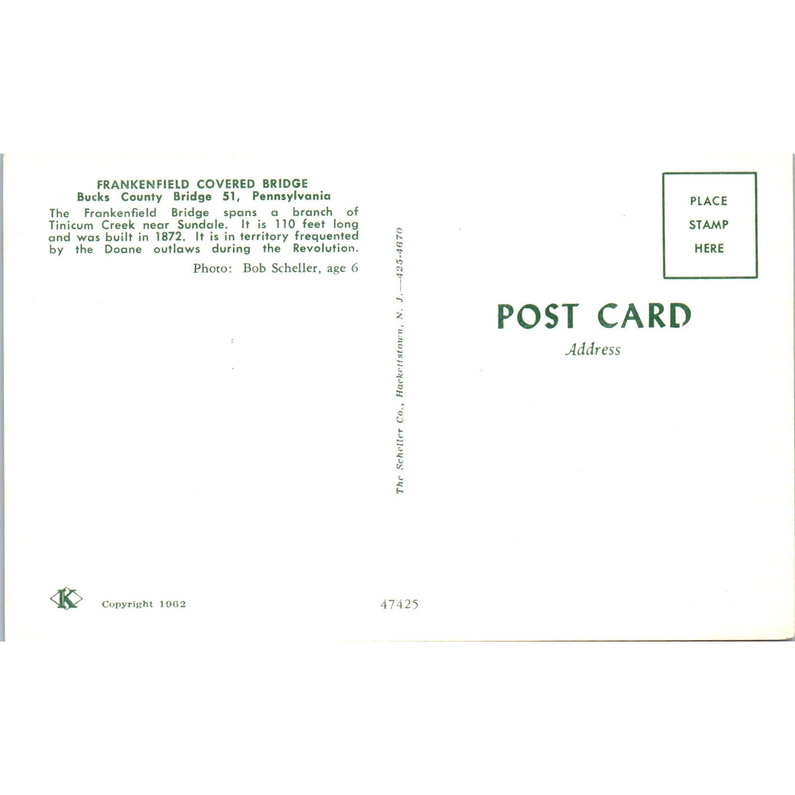 Frankenfield Covered Bridge Bucks County 51 PA Vintage Covered Bridge Postcard PD3