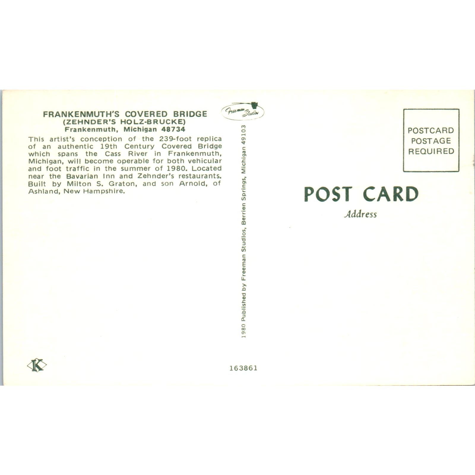 Frankenmuth's Bridge Zehnder's Holz-Brucke MI Covered Bridge Postcard PB11