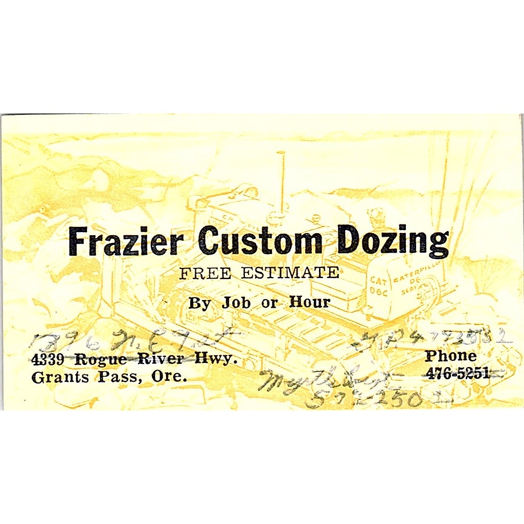 Frazier Custom Dozing Grant Pass Oregon Vintage Business Card SB4-B4