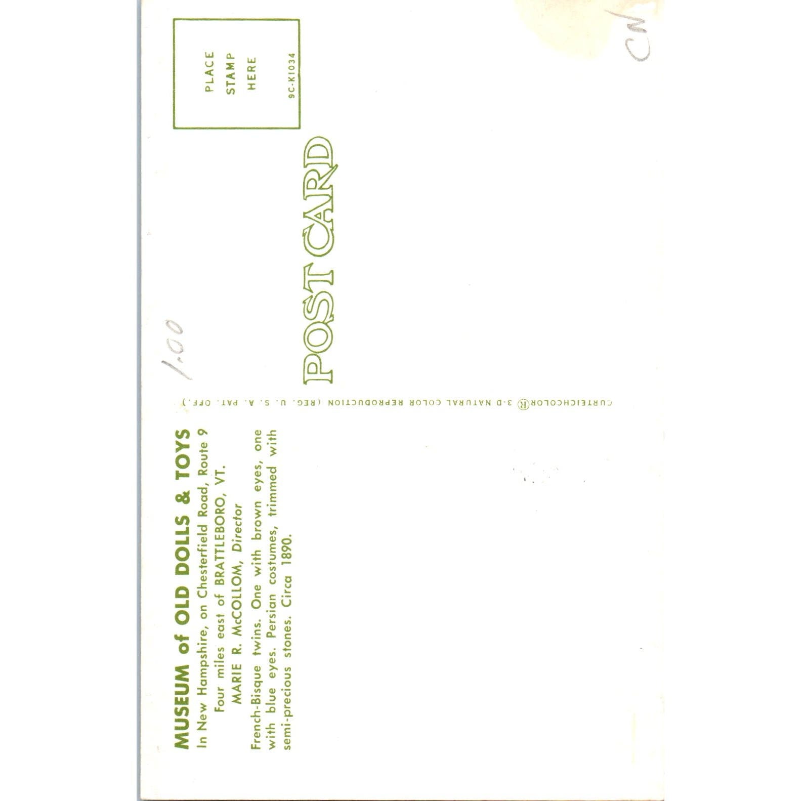 French Bisque Twin Dolls Museum of Old Dolls & Toys Brattleboro VT Original Postcard PB9