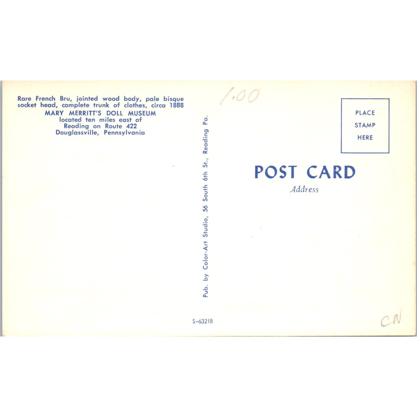 Rare French Bru Doll Mary Merritts Doll Museum Douglassville Original Postcard PB6