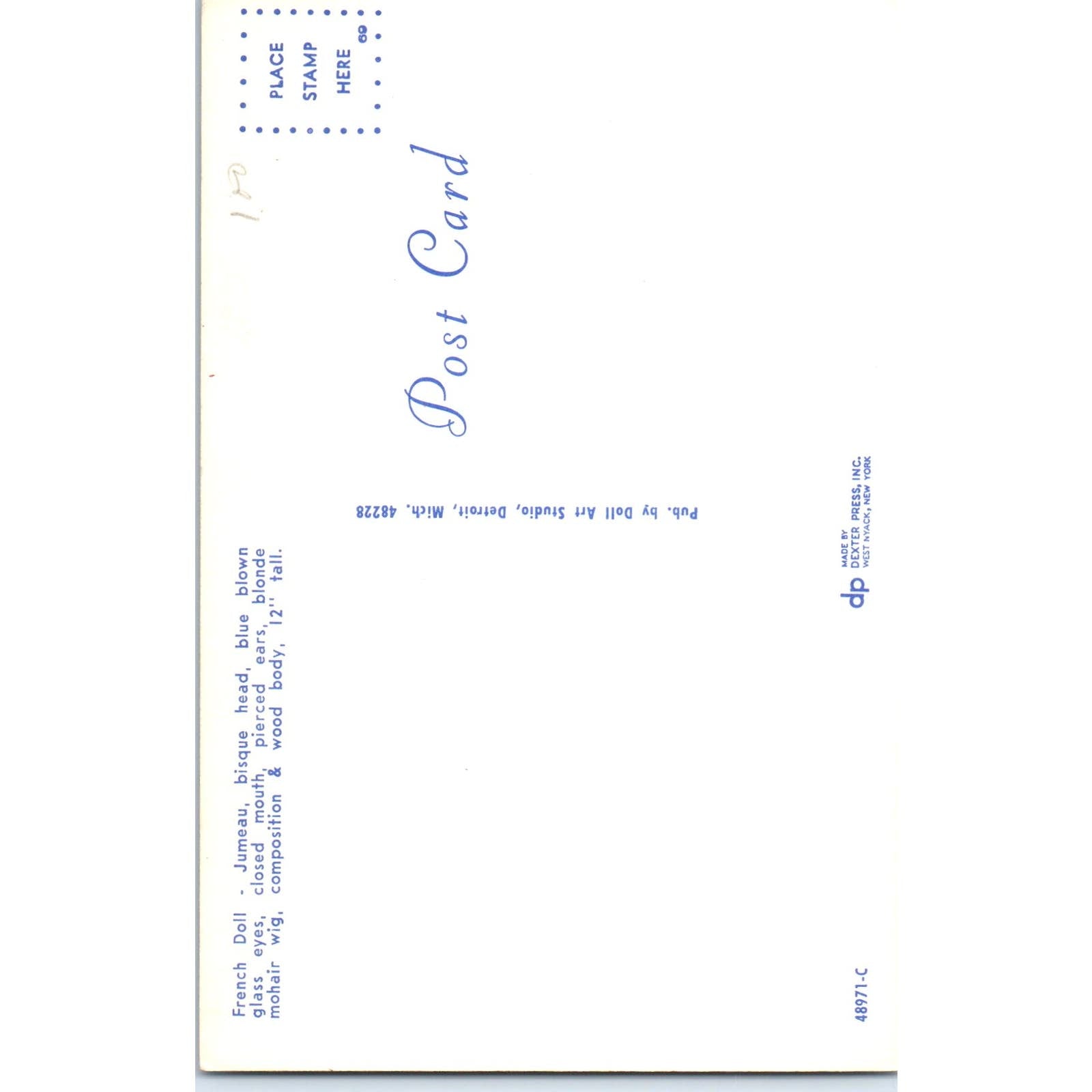 French Doll Jumeau Bisque Head Mohair Composition Wood Body Postcard PB8
