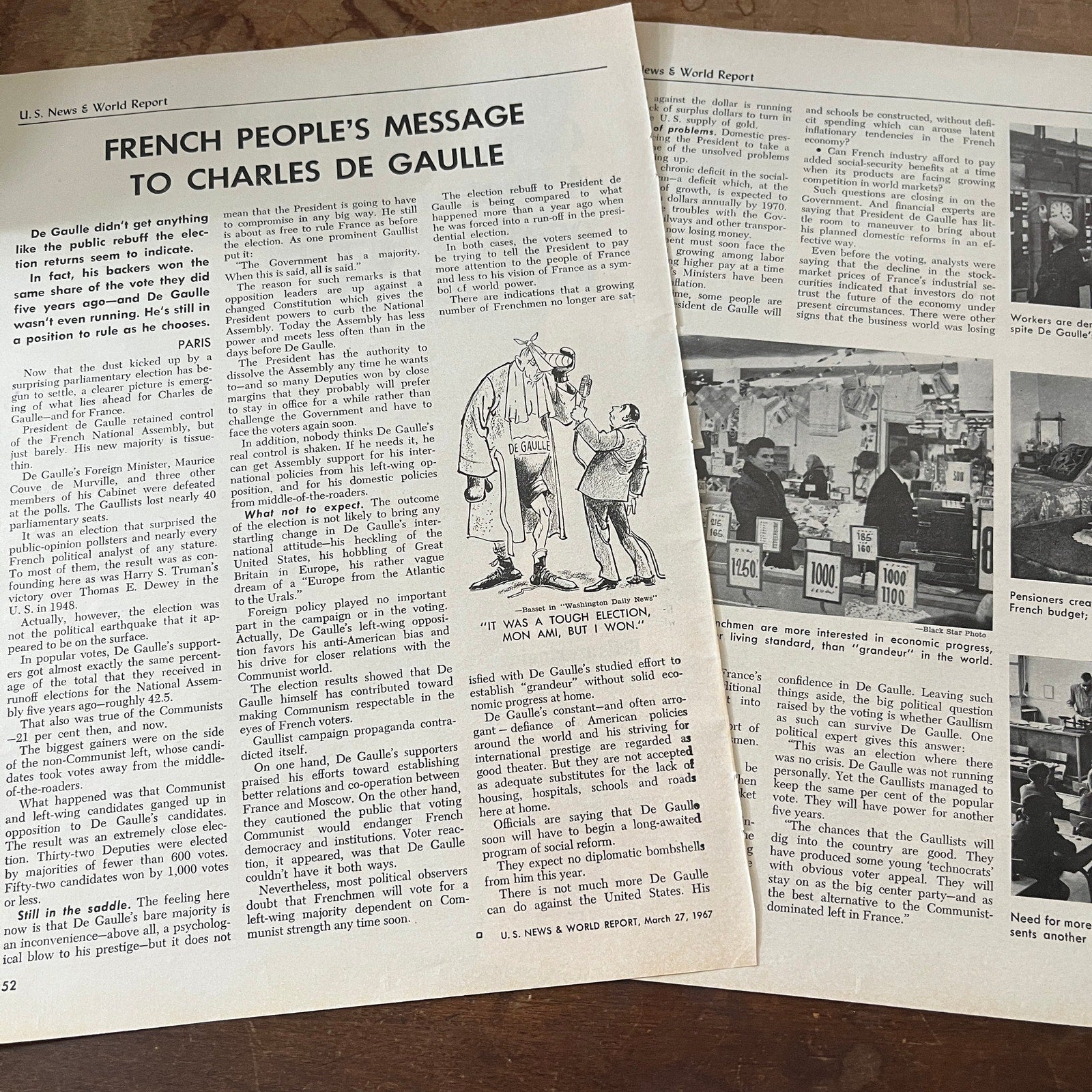 Measures approximately 8x11". Original piece pulled from a 1967 US News & World Report Magazine. See pics for condition.