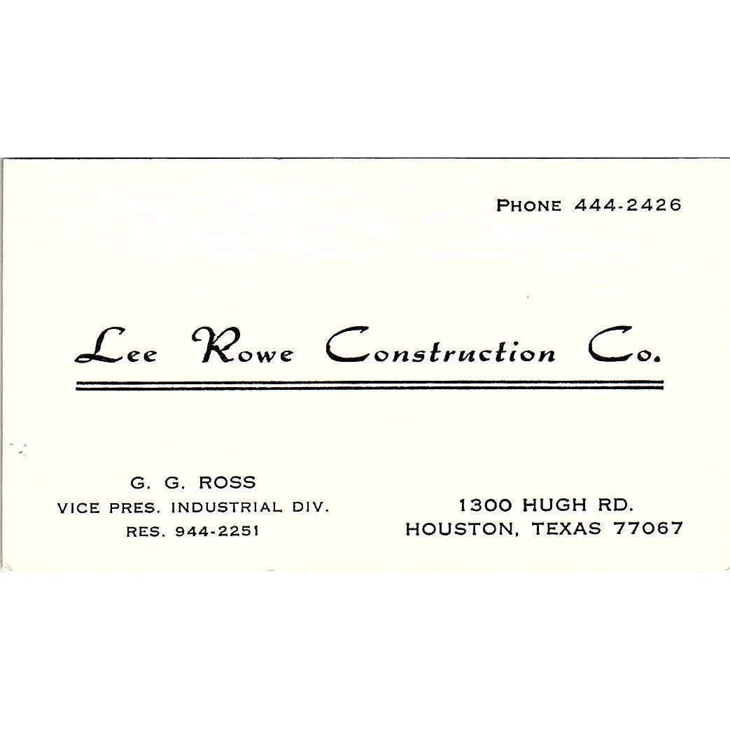 G.G. Ross Lee Rowe Construction Co Houston TX Vintage Business Card SD9-B3