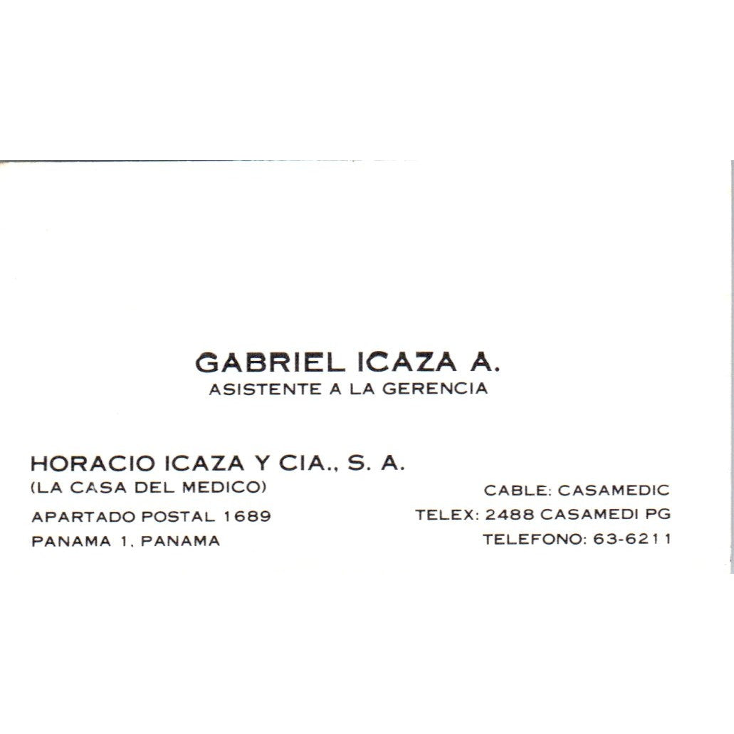 Gabriel Icaza A. Asistente A La Gerencia Panama Vintage Business Card SD8-B16