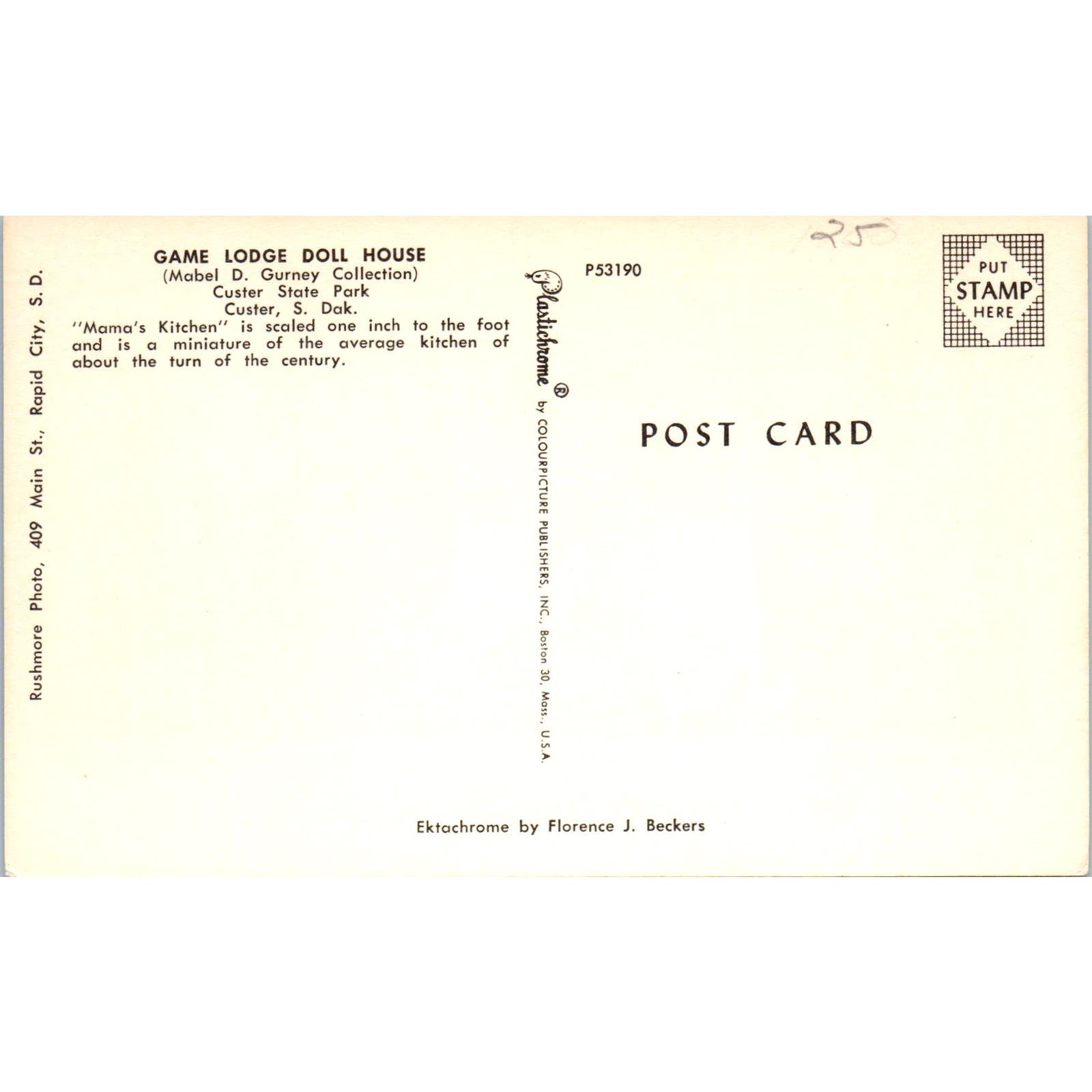 Game Lodge Doll House Mabel D. Gurney Custer South Dakota Original Postcard PB9