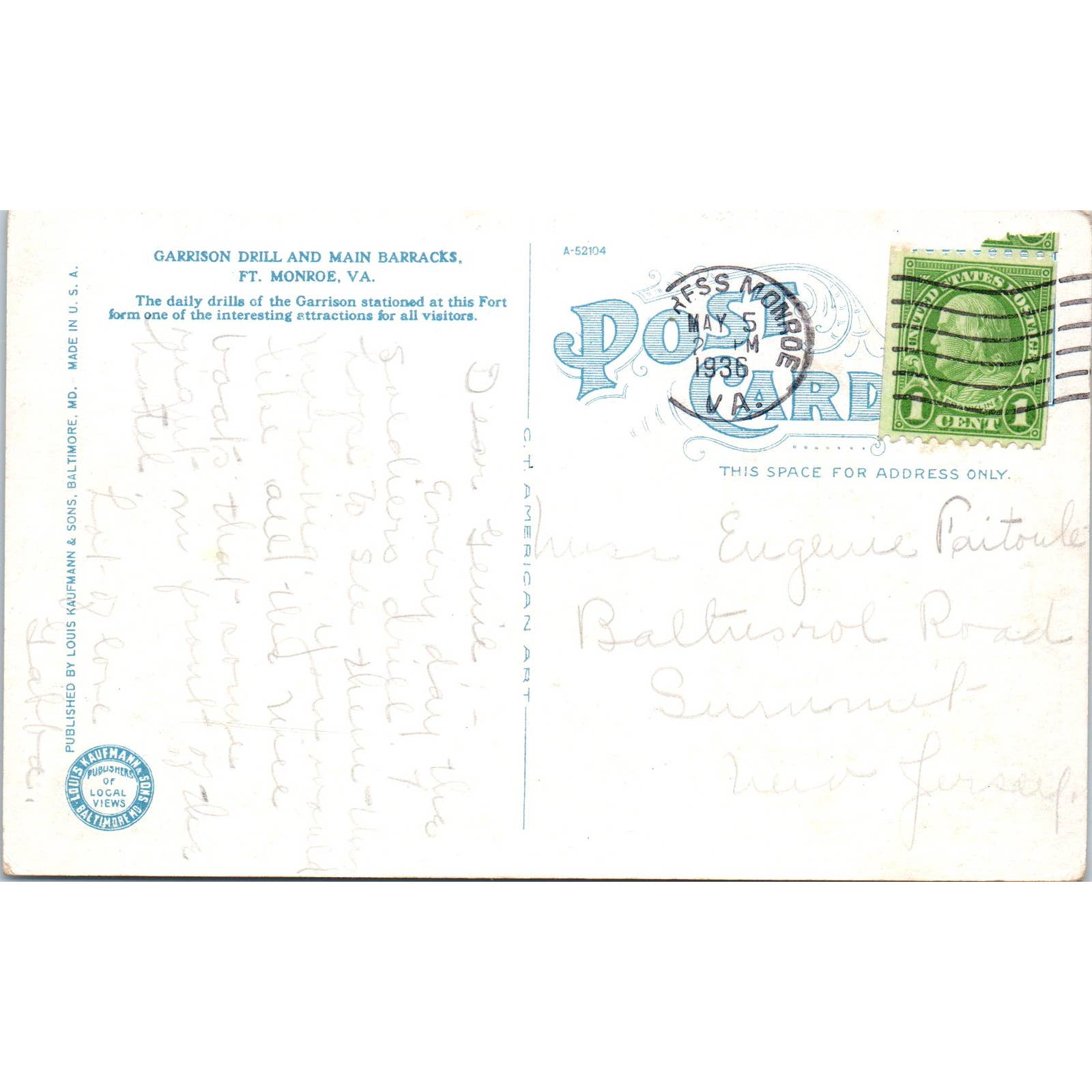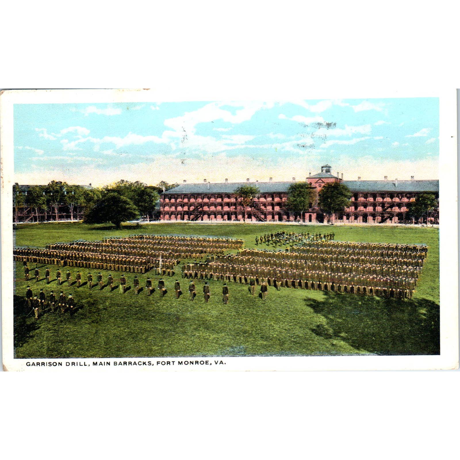 Garrison Drill Main Barracks Fort Monroe VA - Original Postcard TJ7-RP1