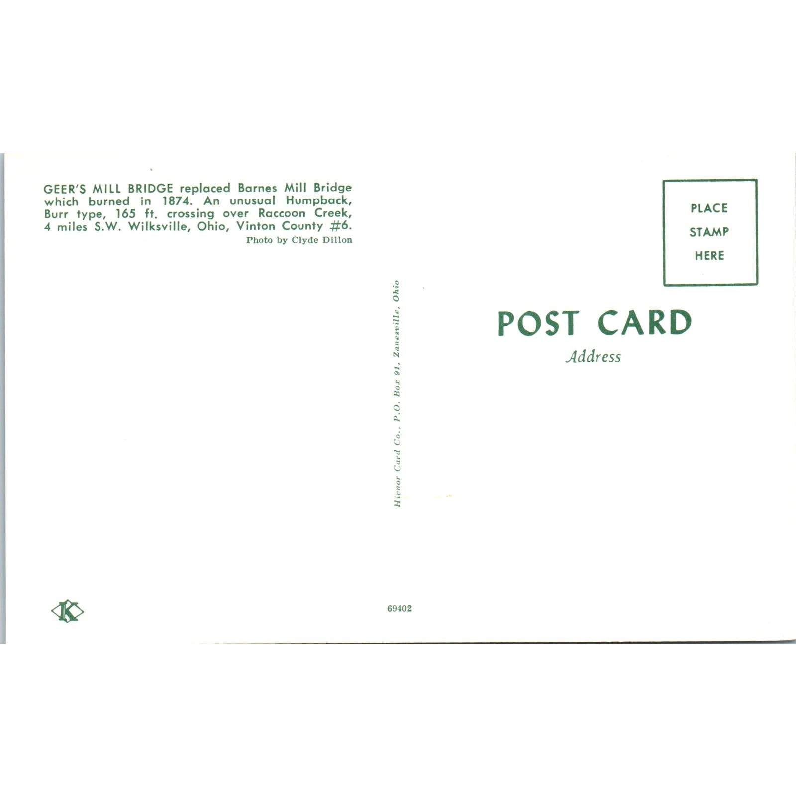Geer's Mill Bridge Raccoon Creek Wilksville OH Covered Bridge Postcard PB10