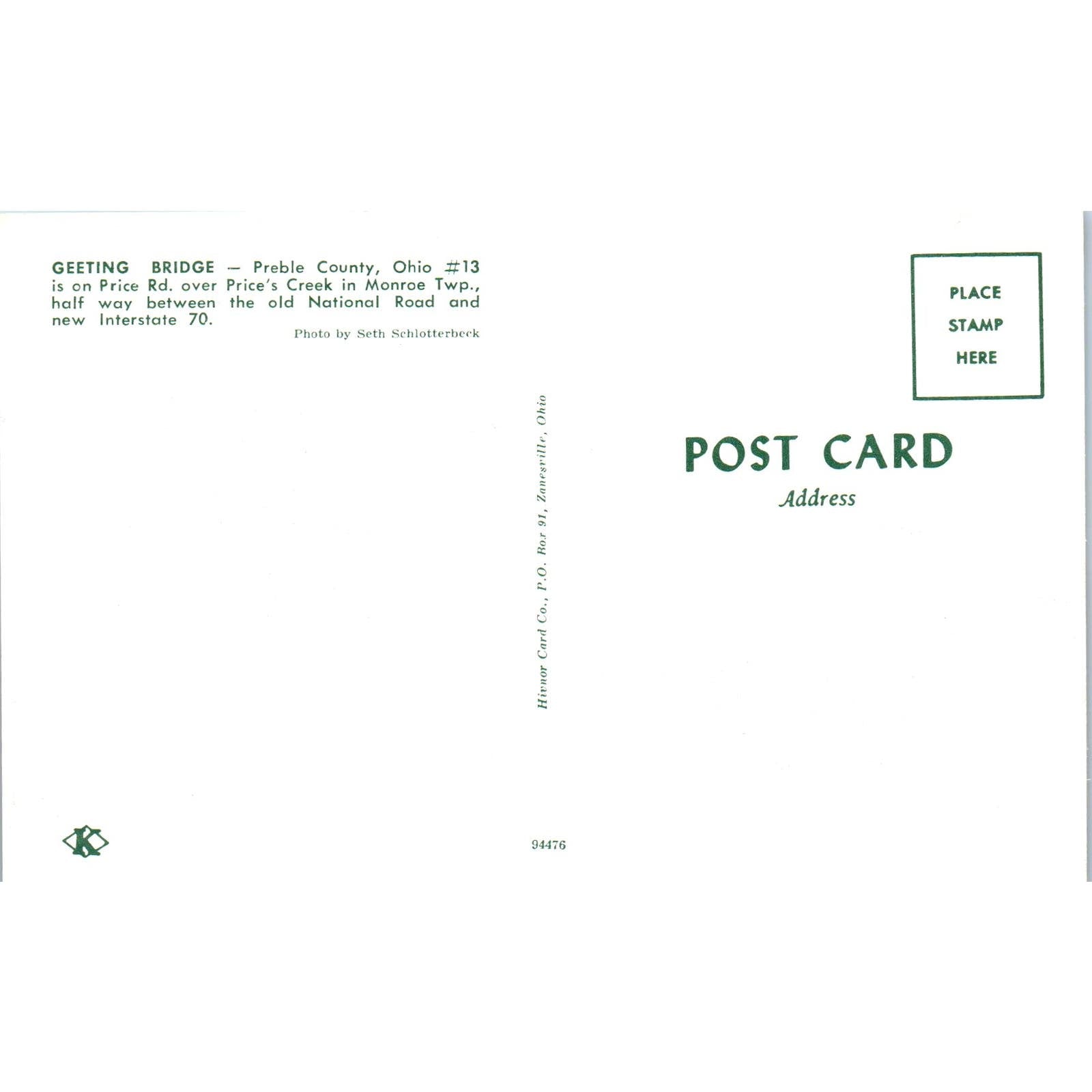Geeting Bridge Preble County #14 Price's Creek Ohio Covered Bridge Postcard PC3