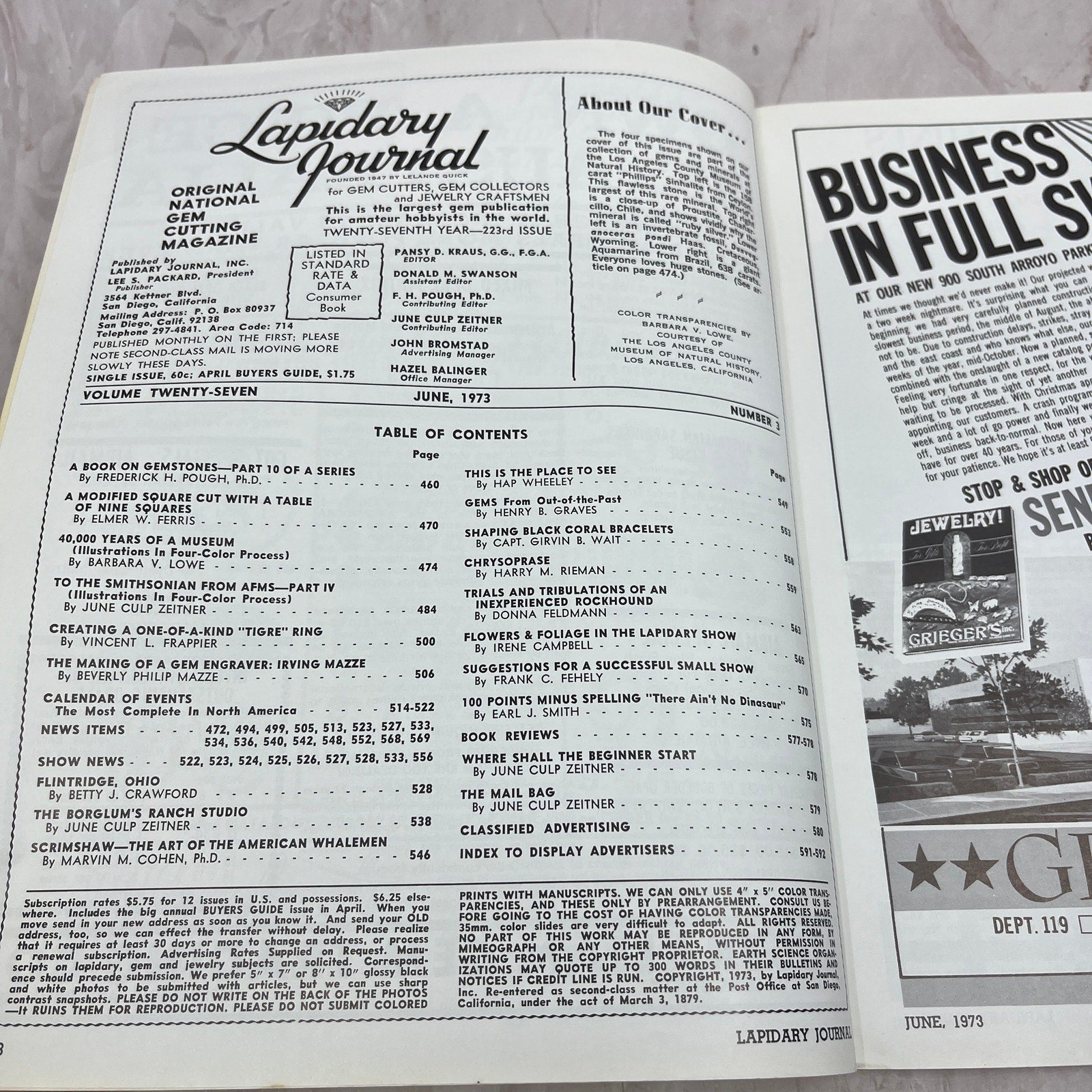 Gems, Minerals, Fossils Los Angeles County Museum - Lapidary Journal Magazine - Jun 1973 M25