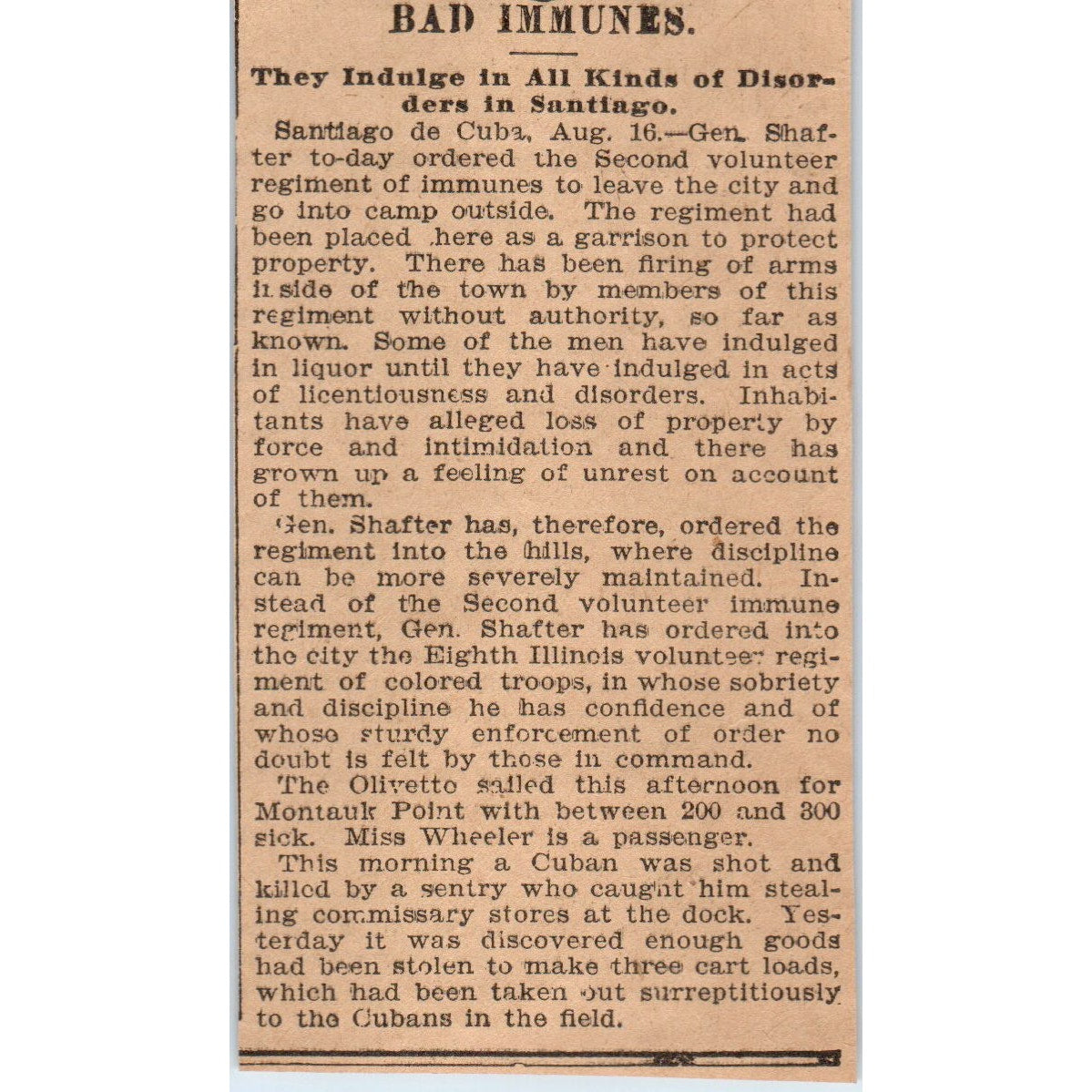 Gen Schafter Orders 2nd Vol Reg of Immunes to Leave Santiago Spanish American War St. Paul 1898 Newspaper Ad AF2-Q1