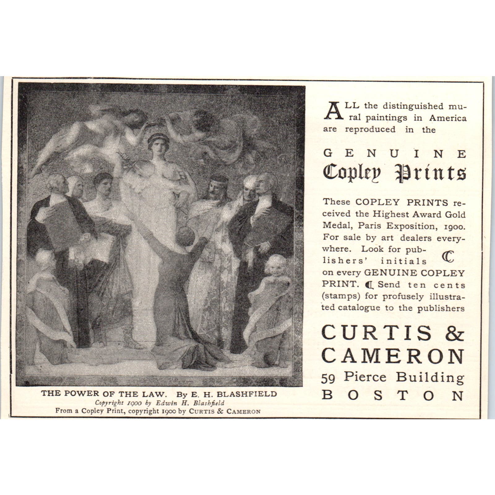 Genuine Copley Prints Curtis & Cameron Boston c1905 Victorian Ad AE9-MA3