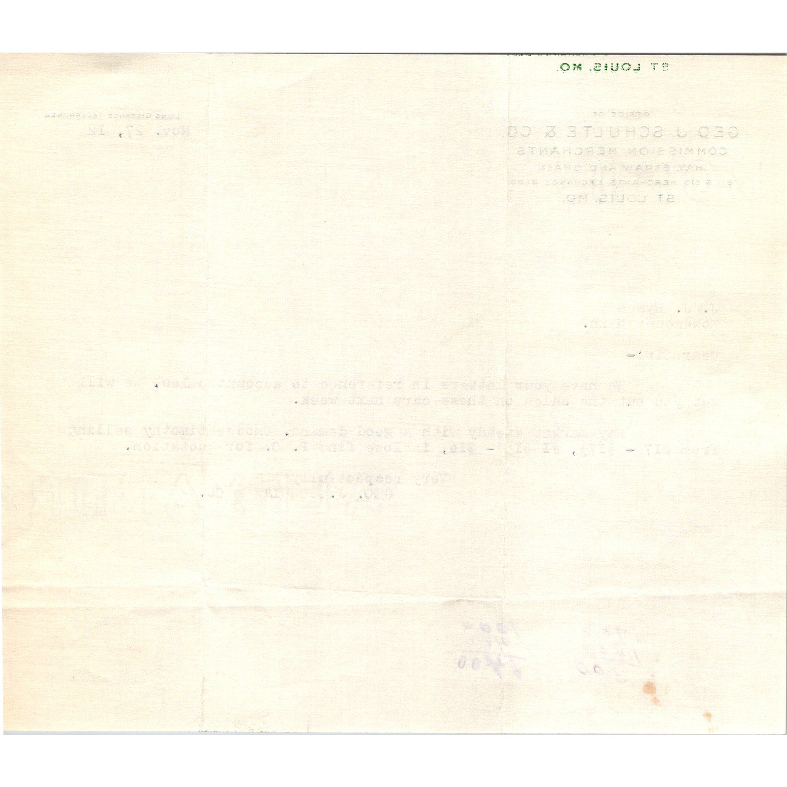 Geo. J. Schulte & Co Grain Commission Merchants St. Louis MO 1912 Letterhead Billhead K24