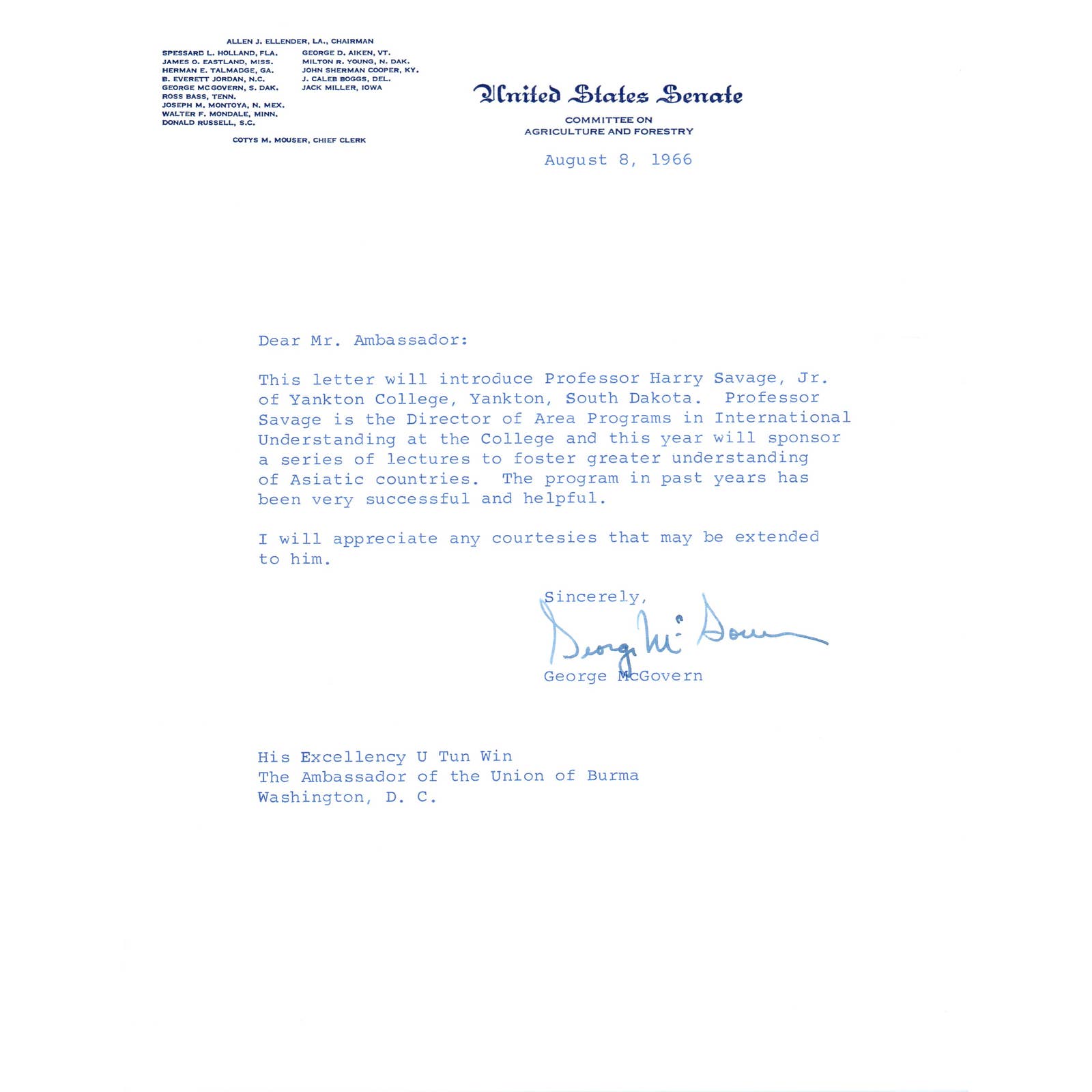 George McGovern Signed Letter on United States Senate Stationery 1966 TK1-P6