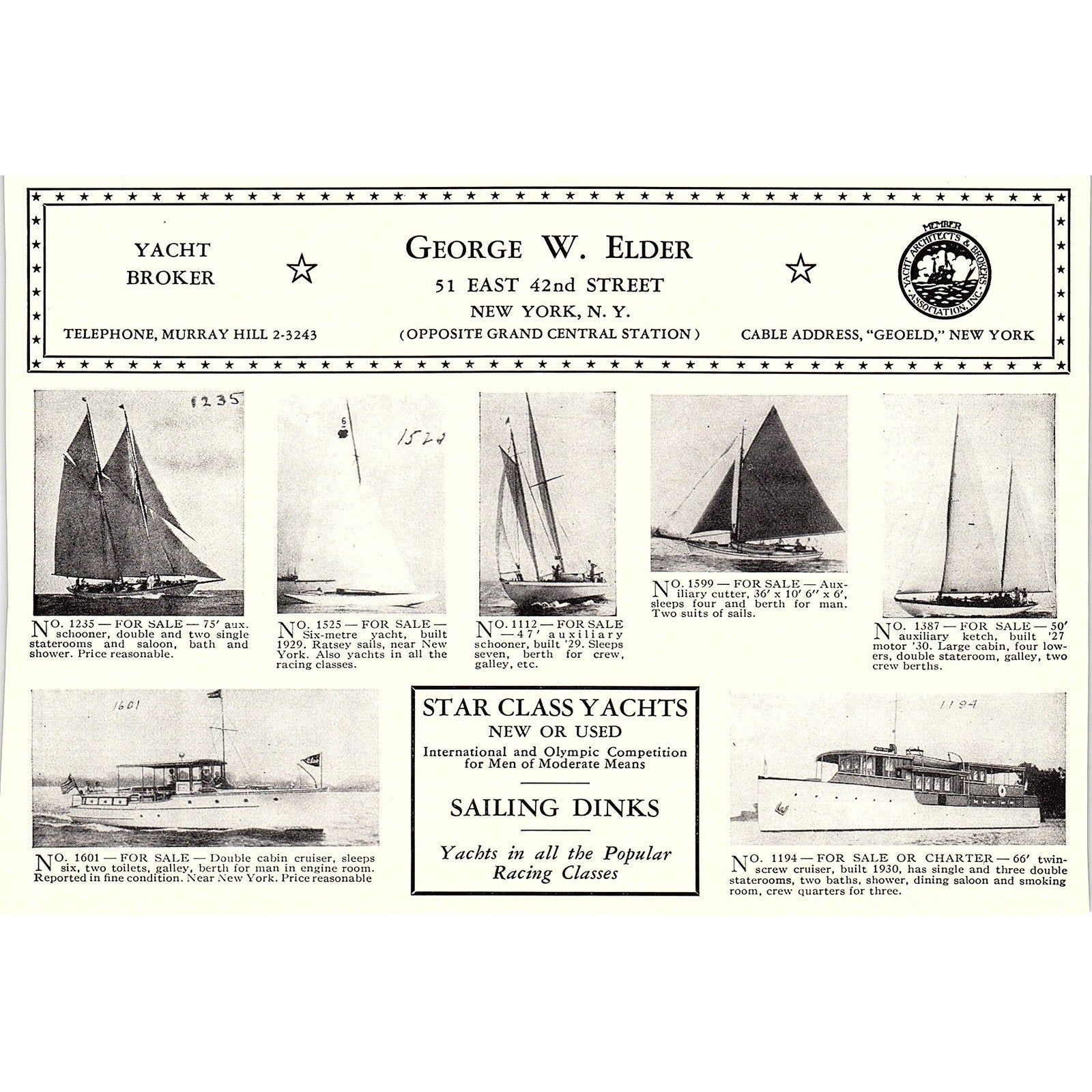 George W. Elder Star Class Yachts Sailing Dinks New York NY 1932 AG2-7
