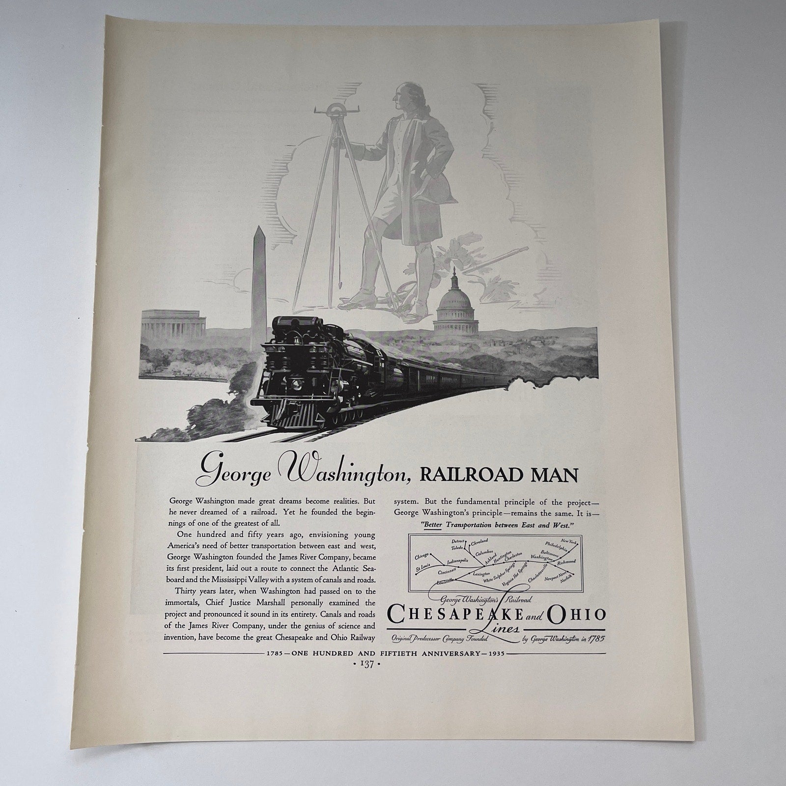 George Washington, Railroad Man Chesapeake and Ohio Lines 1935 Ad V1-4