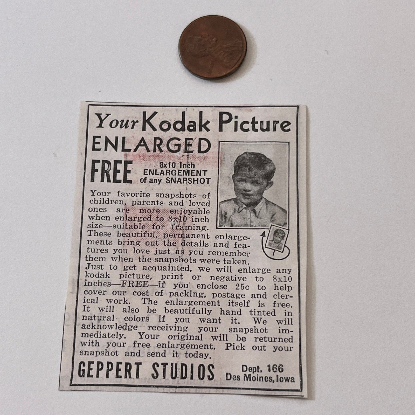 Geppert Studios Your Kodak Picture Enlarged Des Moines IA 1936 Ad SAG4-M4