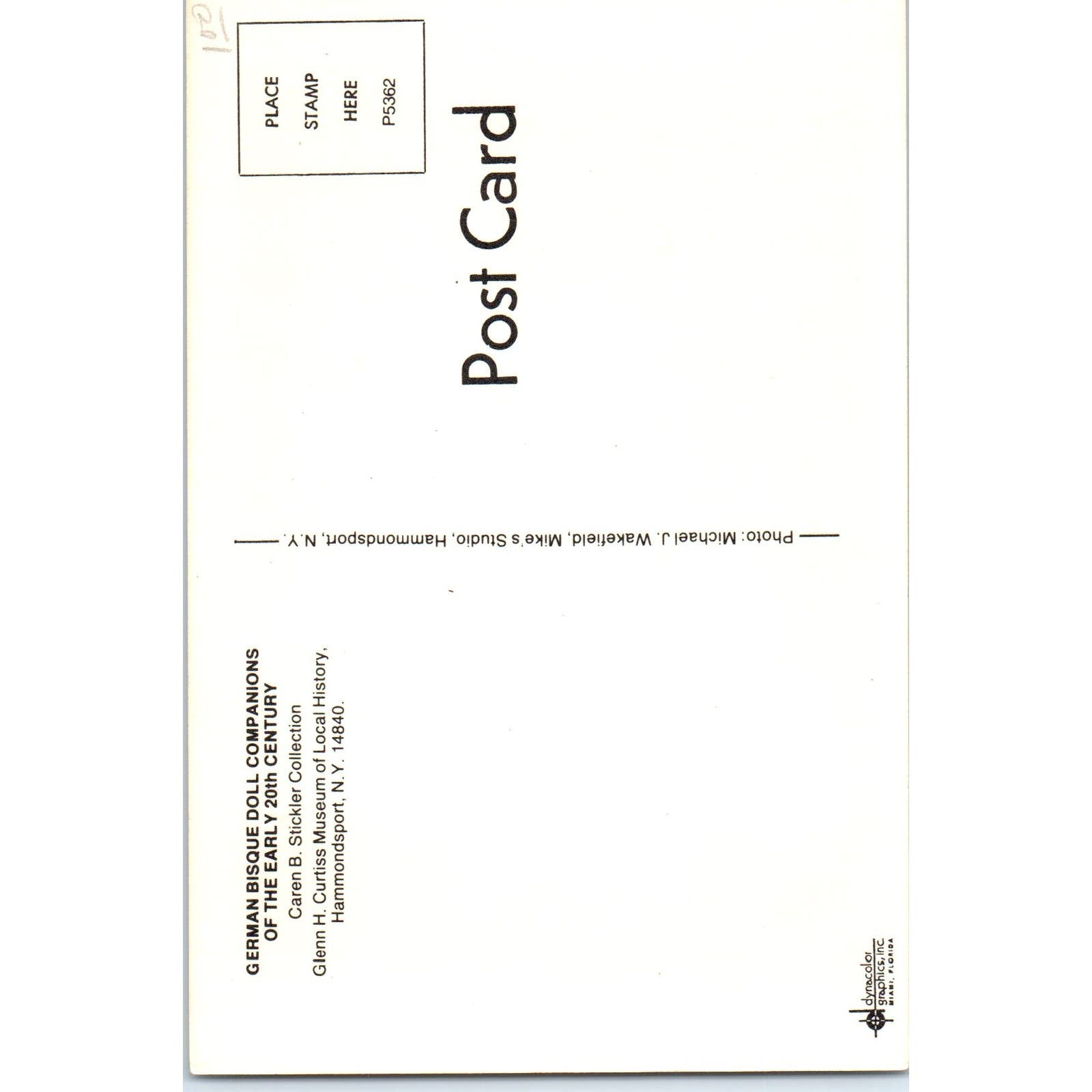 German Bisque Dolls Caren B. Stickler Glenn H. Curtiss Museum Original Postcard PB10