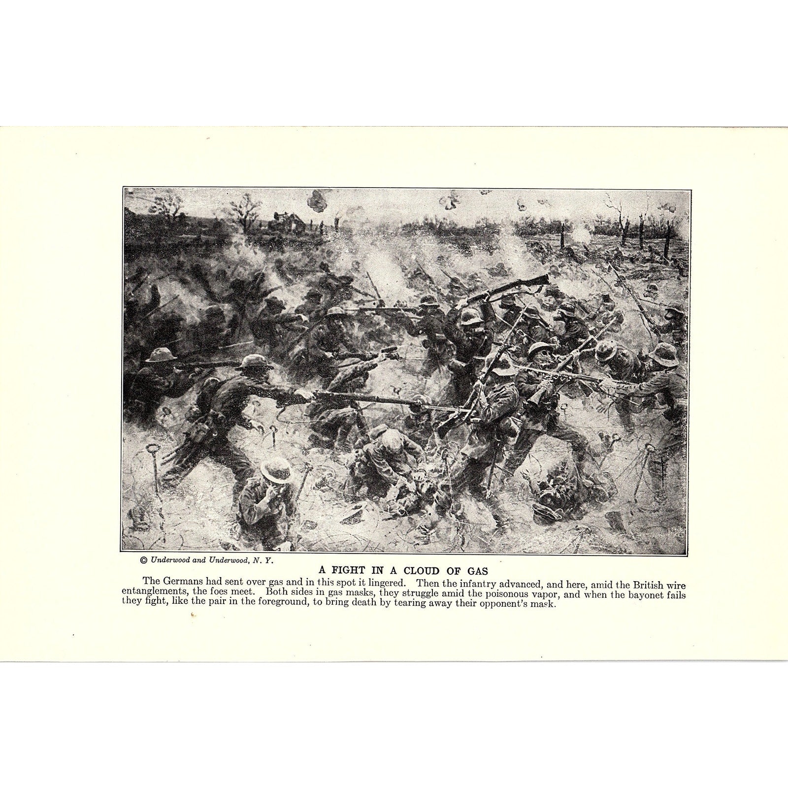 German Rule in France, Fighting in Mustard Gas 1919 WWI Print AG1-2