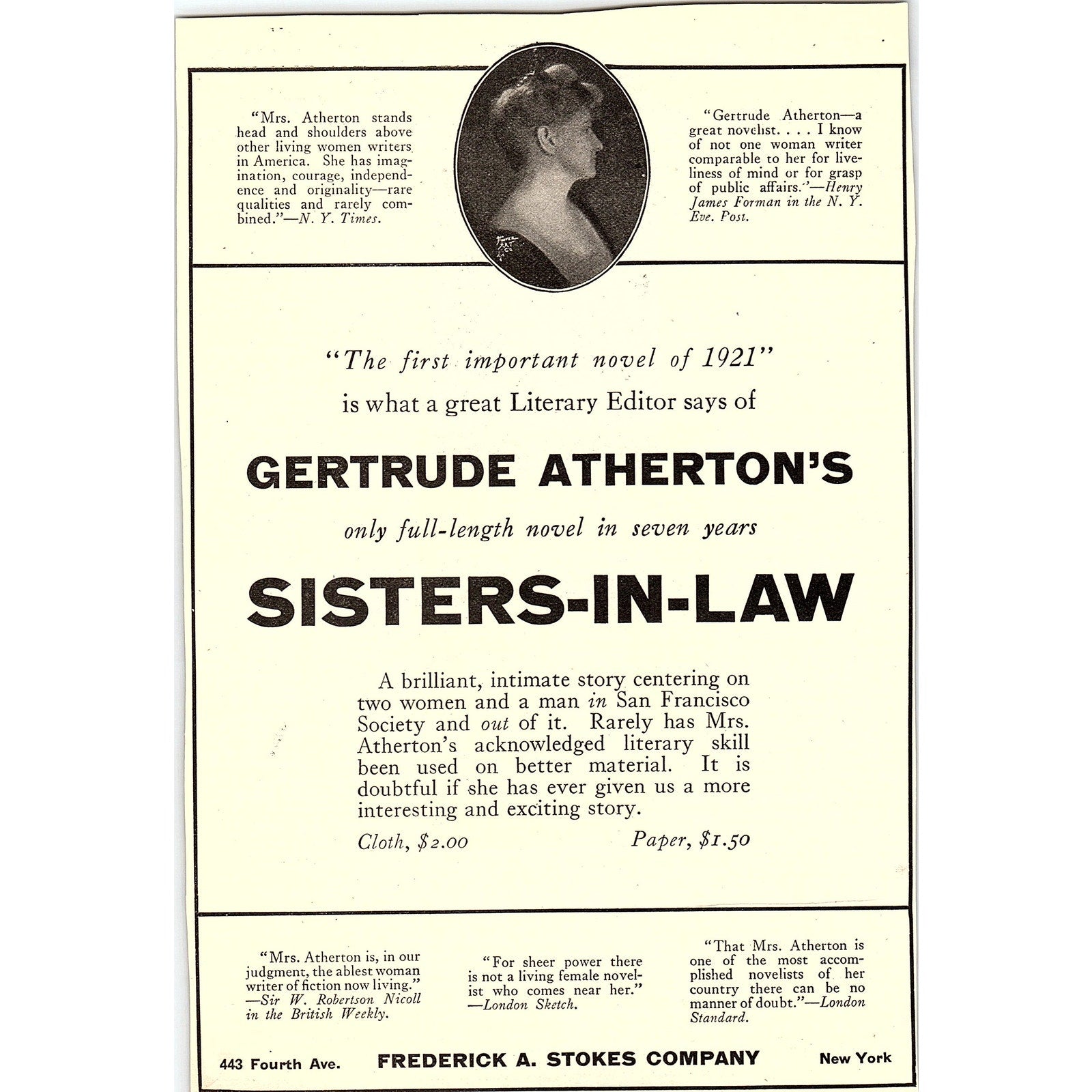 Gertrude Atherton's Sisters-In-Law c1920 Ad AF8-10