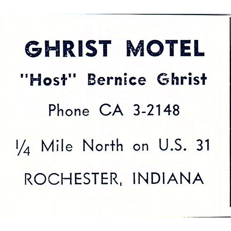 Ghrist Motel - Bernice Ghrist Rochester Indiana 1964 Ad AG1-S16