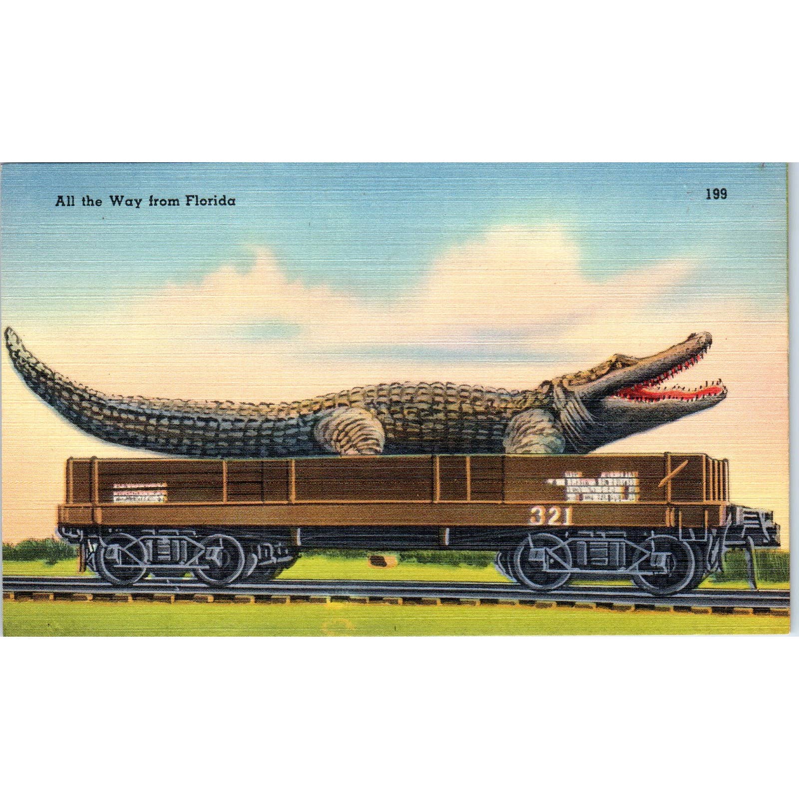 Giant Alligator From Florida on a Train Car Humor Original Postcard TK1-24