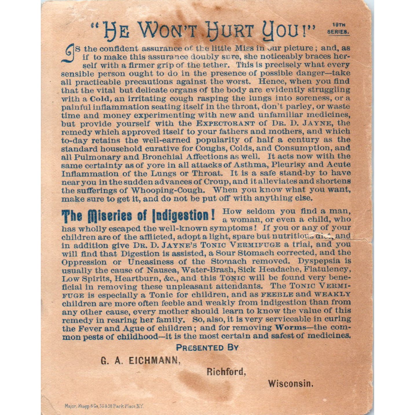 Girl With Bloodhound GA Eichman Richford WI c1880 Victorian Trade Card AE2