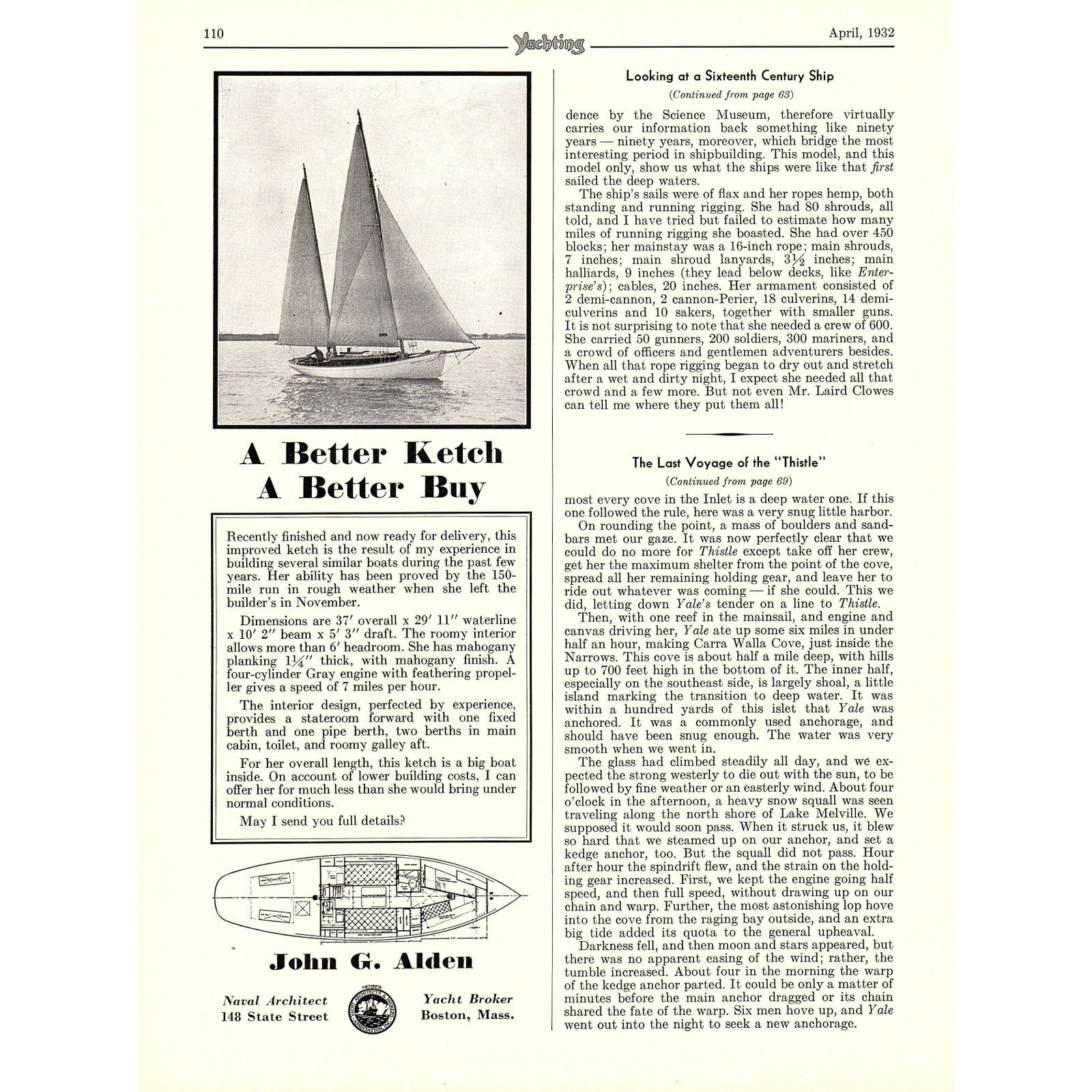 Gloucester Cruisers Staples, Johnson & Co Biddeford ME, John G Alden 1932 Ad V1-4