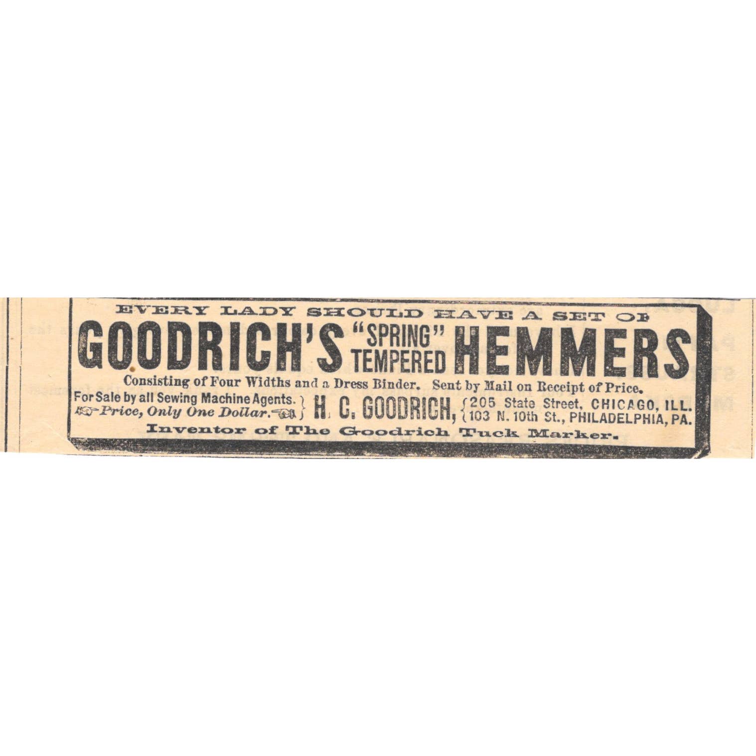 Goodrich's Spring Tempered Hemmers Dress Binder - Victorian Ad 1878 Original TJ7-L2