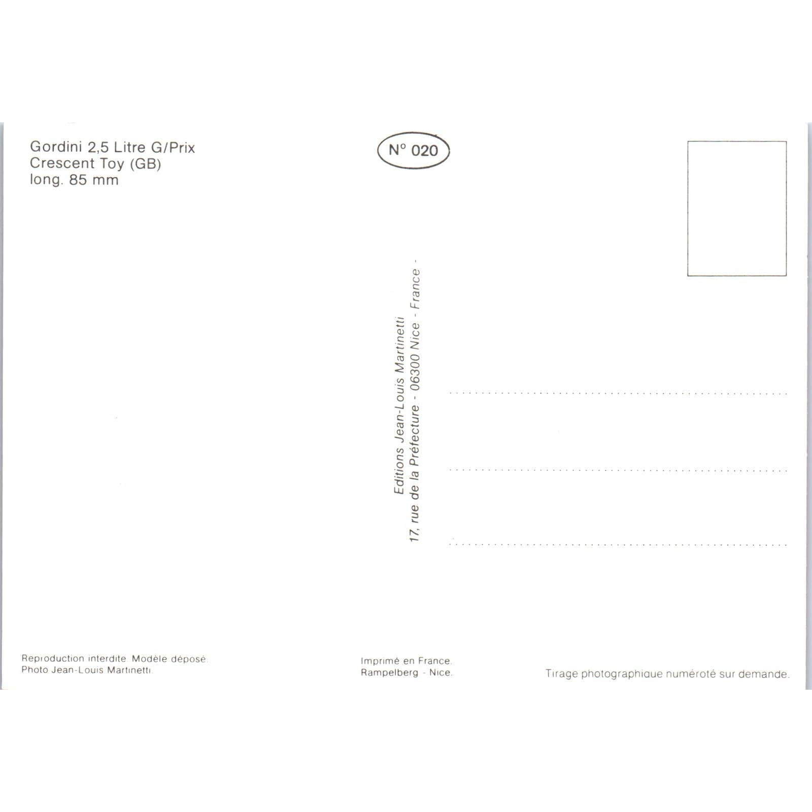 Gordini 2.5 Litre Crescent Toy French Toy Race Car Original Postcard TK1-P18