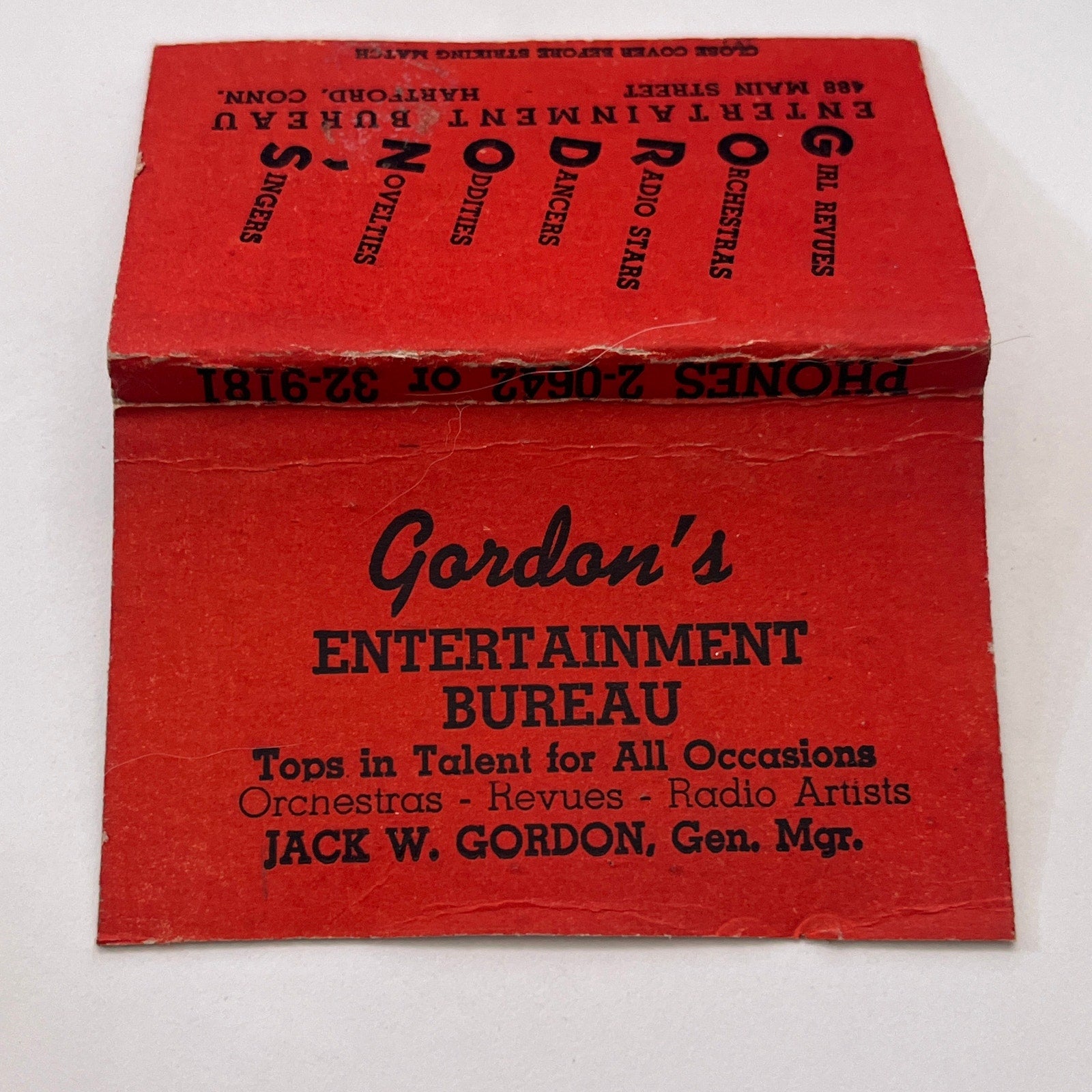 Gordon's Entertainment Bureau Jack W Gordon Hartford CT Vintage Matchbook Cover TB8-MB-13