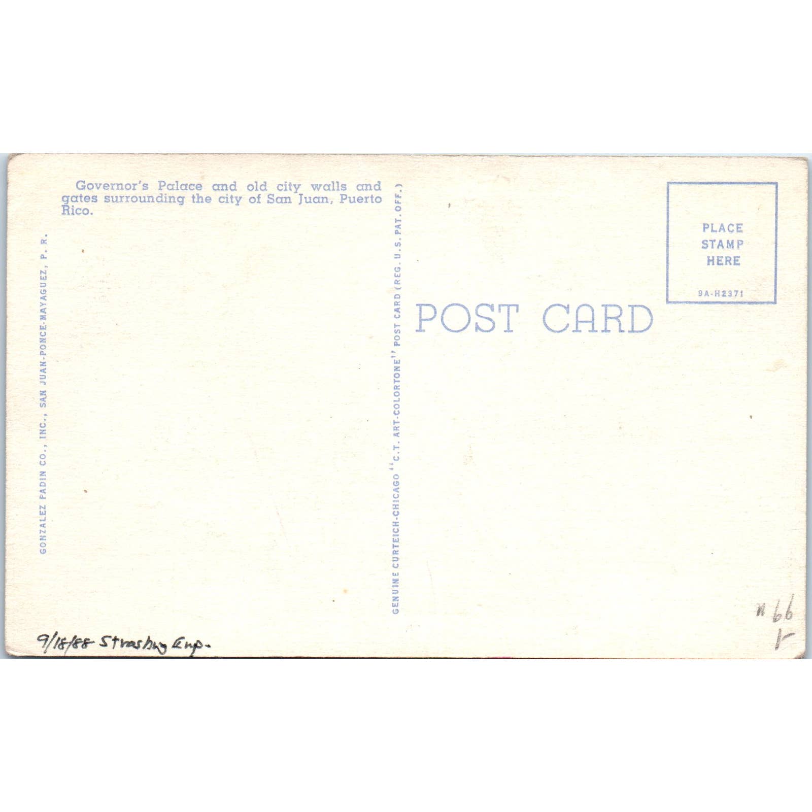 Governor's Palace and Walls, San Juan, Puerto Rico Original Postcard TK1-P1