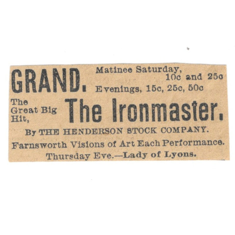 Grand Matinee Saturday the Ironmaster St. Paul 1898 Newspaper Ad AF2-S3