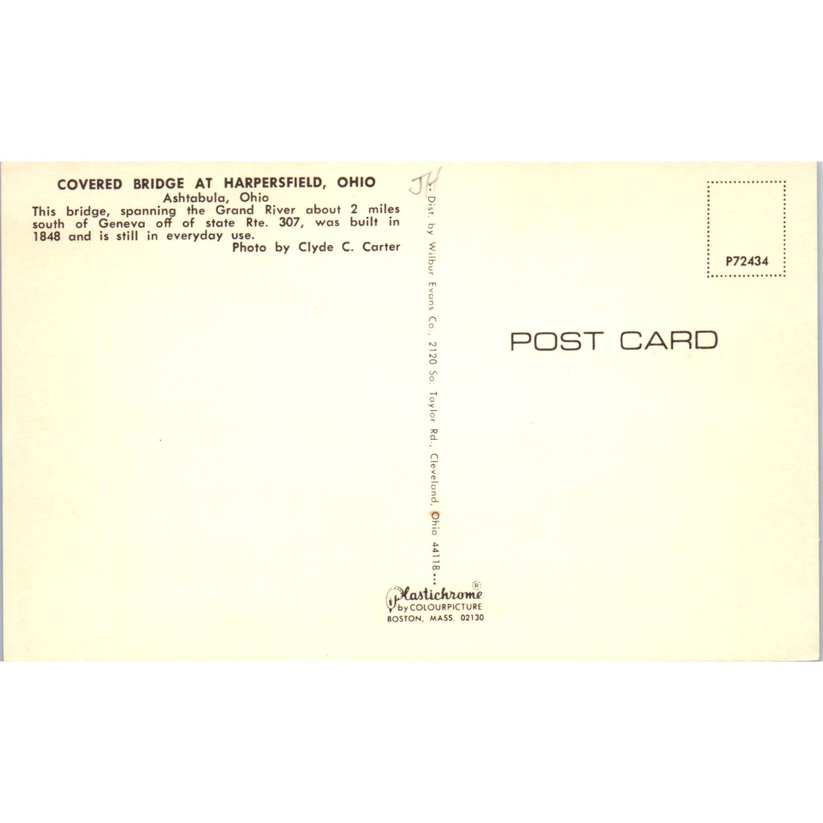 Grand River Bridge Harpersfield Ashtabula OH Covered Bridge Postcard PB10