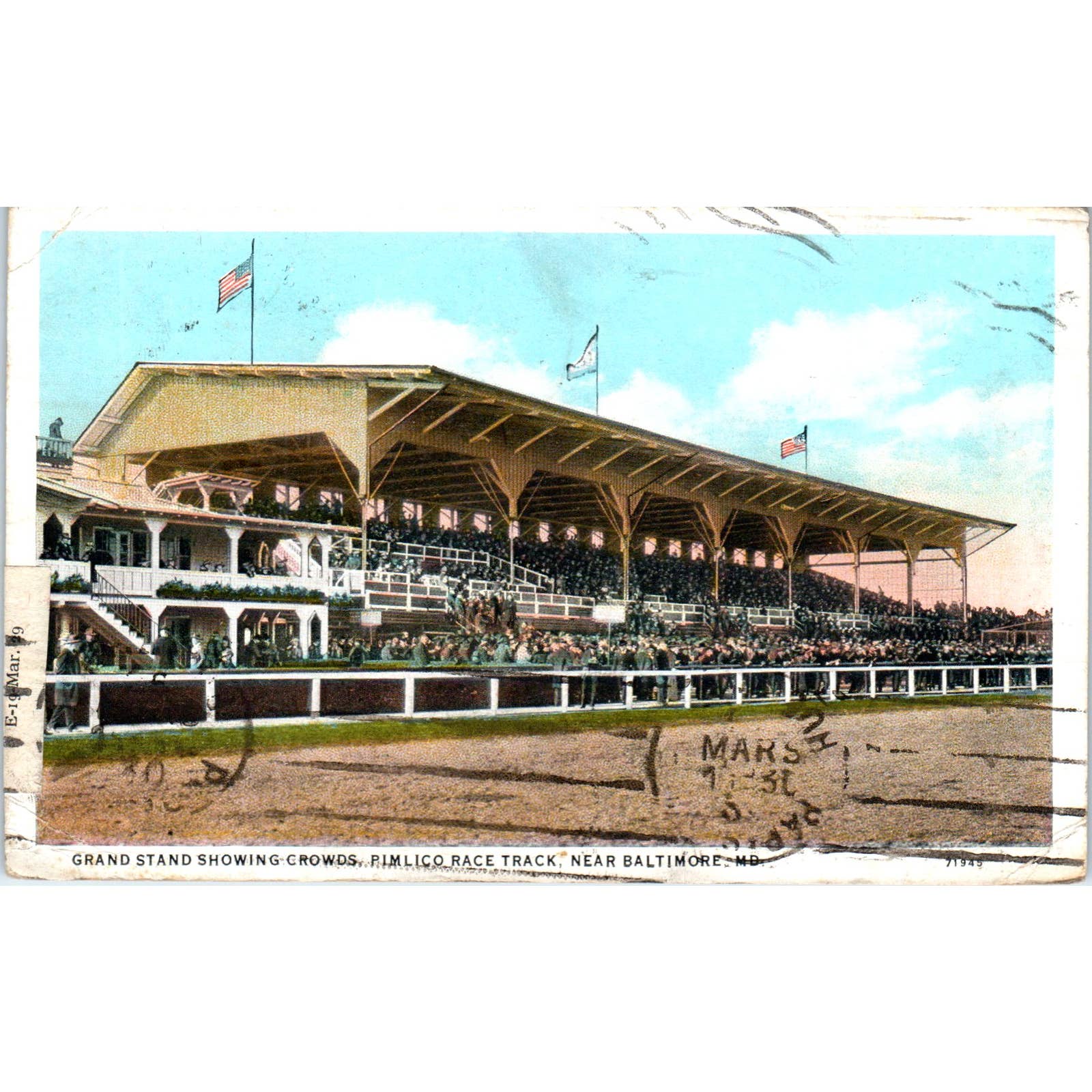 Grand Stand Crowds Pimlico Race Track Baltimore MD Original Postcard TK1-23