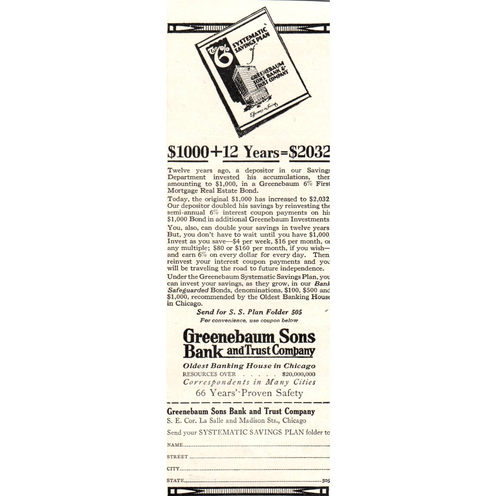 Greenbaum & Sons, Oldest Banking House in Chicago - 1921 Original Ad TJ7-S